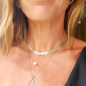 Collar Chapa Ondulada con piedra – Verde Aventurina