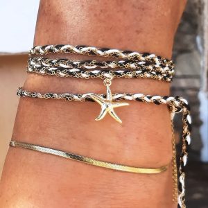 Pulsera Triple Piedra Brass Plateada – Hematite Plata Lila