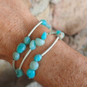 Pulsera Triple Piedra Brass Plateada – Amazonita