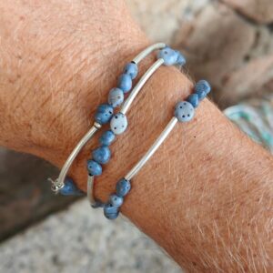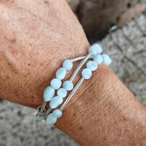 Pulsera Triple Piedra Brass Plateada – Larimar