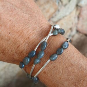Pulsera Triple Piedra Brass Plateada – Labradorita