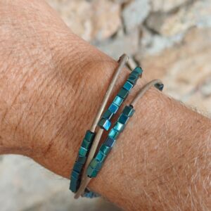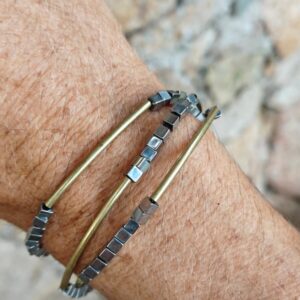 Pulsera Triple Piedra Brass – Hematite Violeta