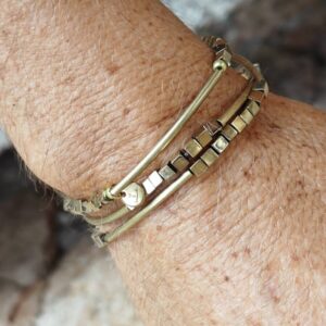 Pulsera Triple Piedra Brass – Hematite Dorado
