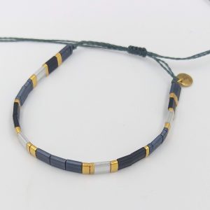 Pulsera Cristal Japones Gun Metal Oro Silk