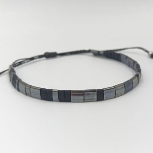 Pulsera Cristal Japones Negro Plata