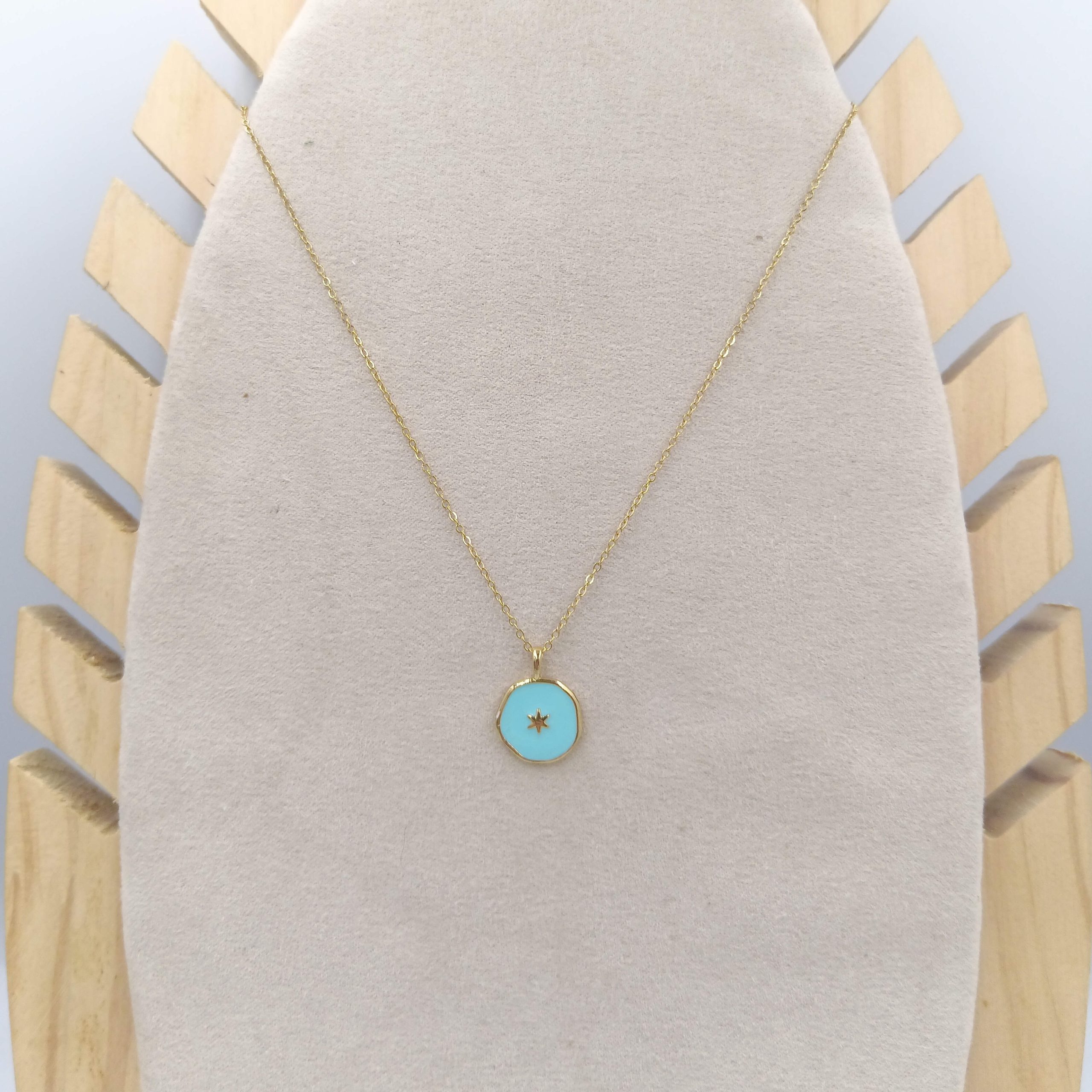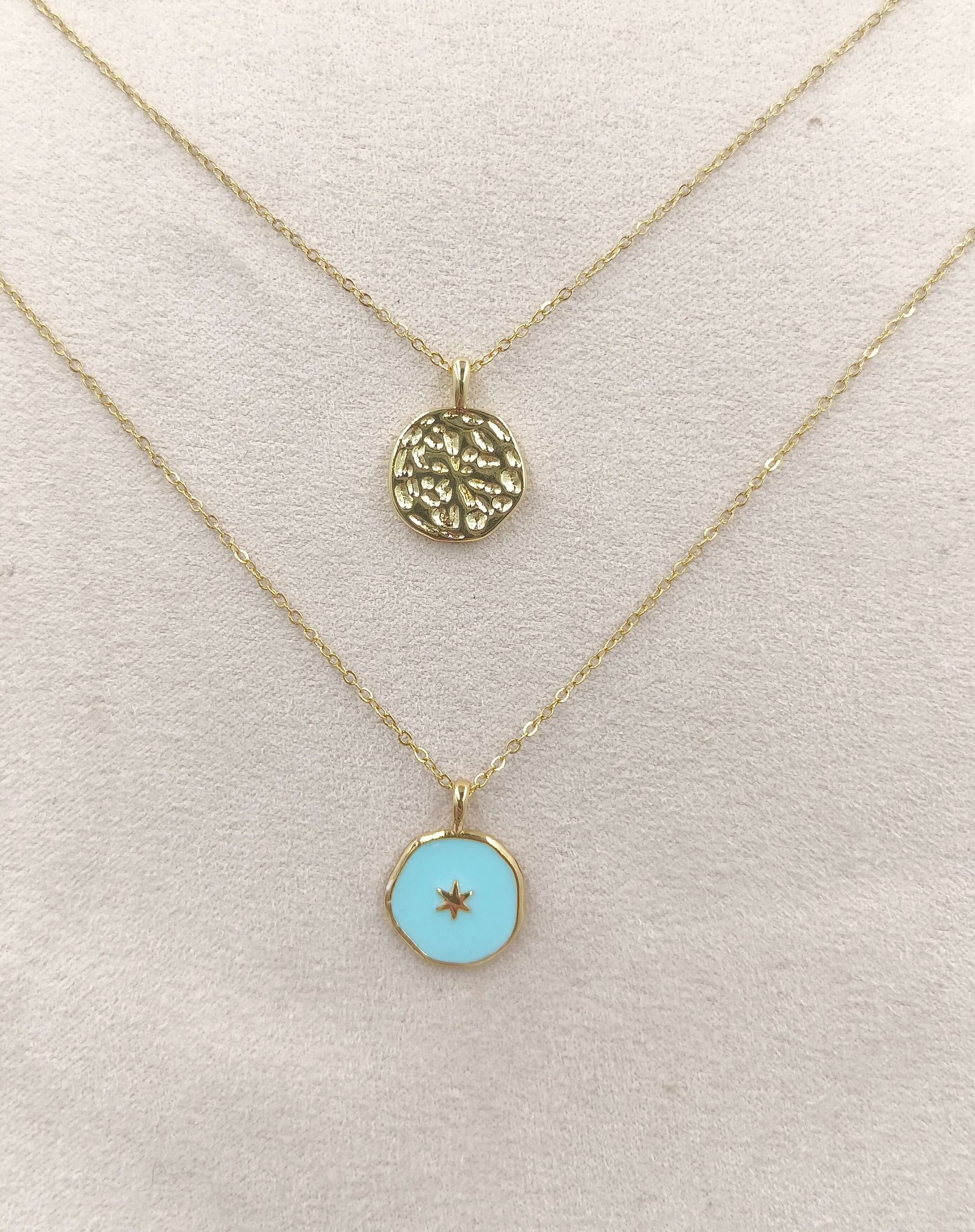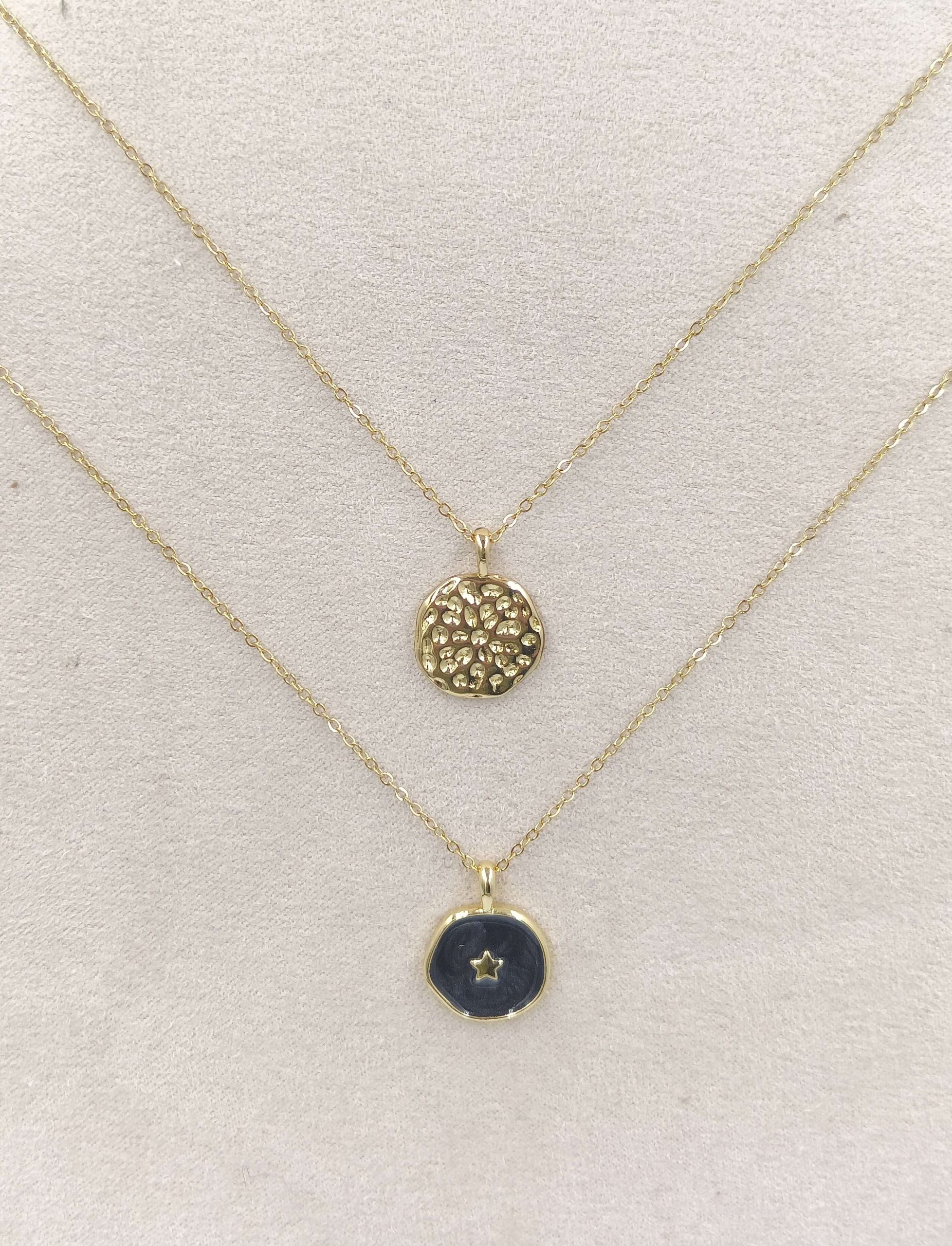 Collar Chapa esmalte en brass con cadena de acero inoxidable con baño de oro 18 quilates