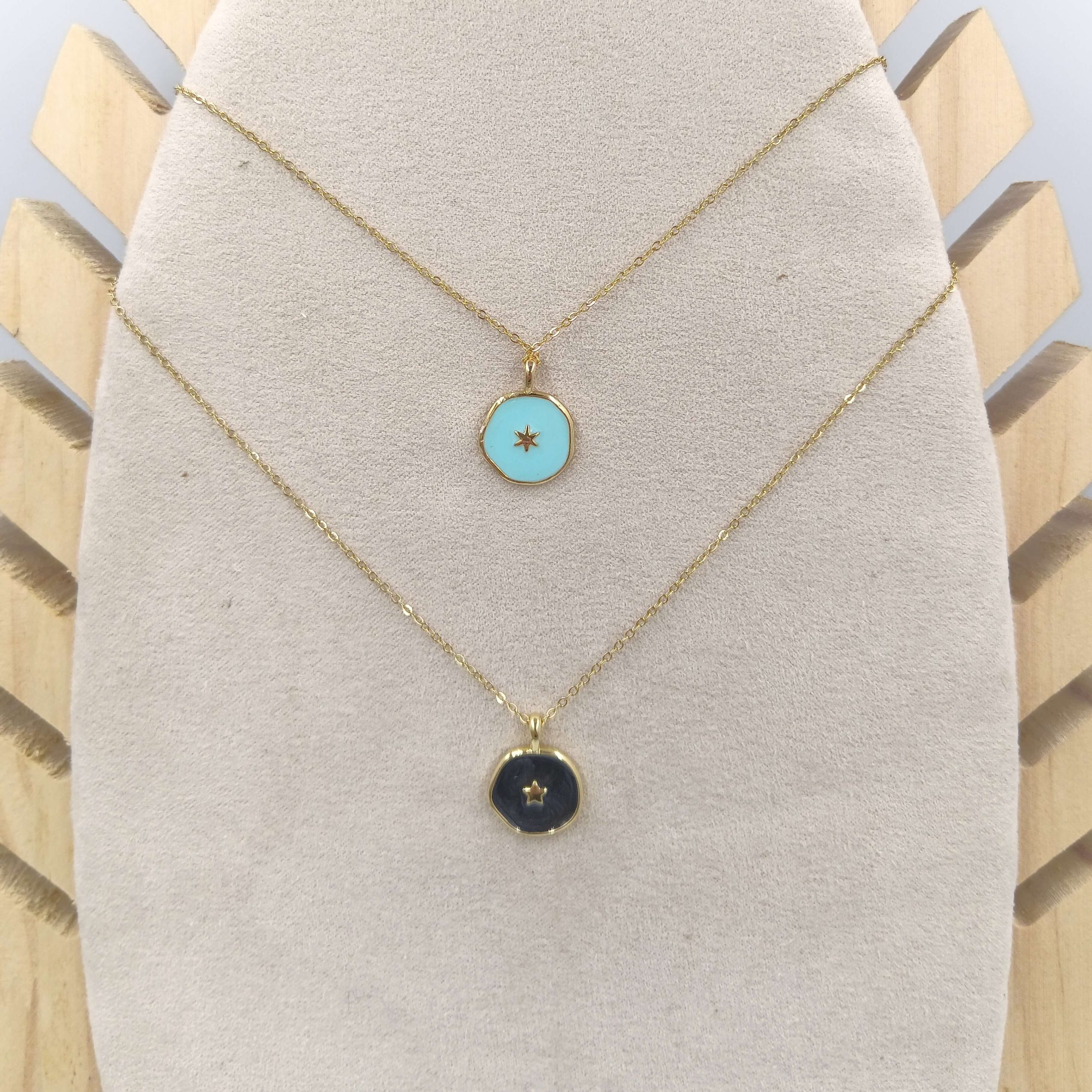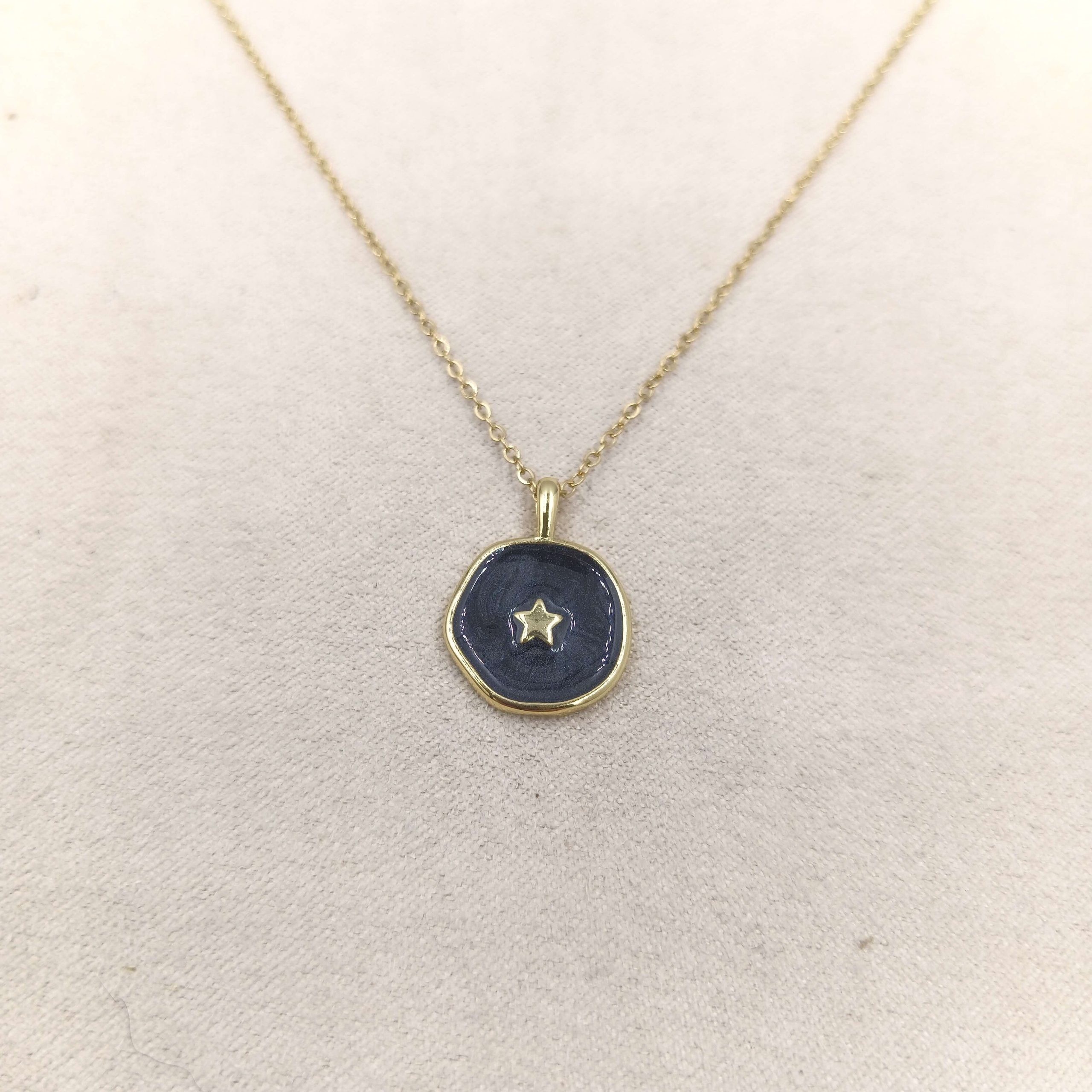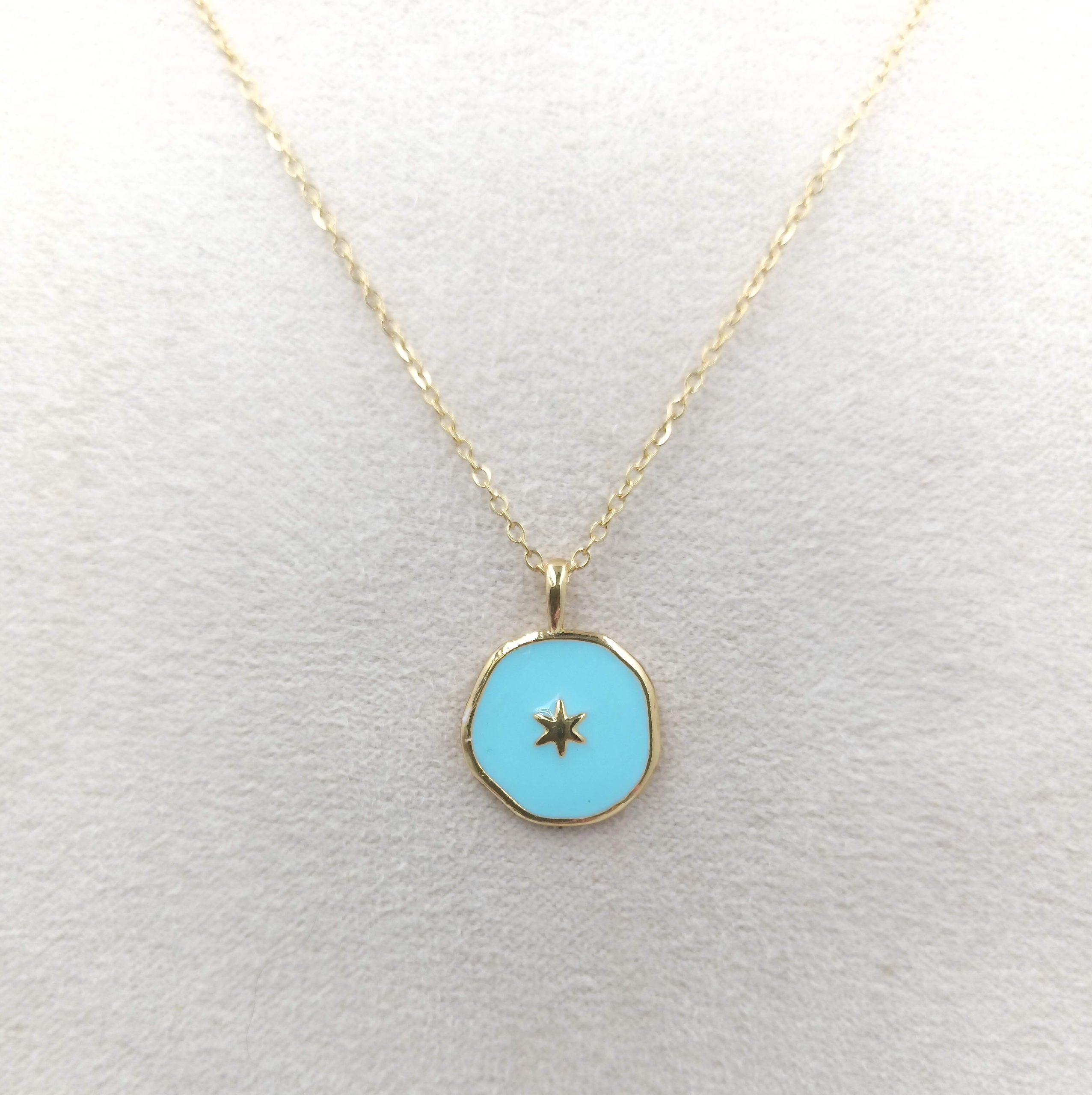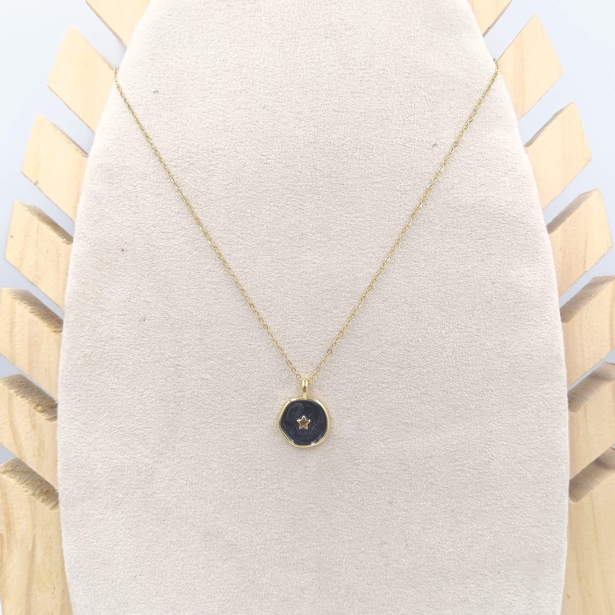 Collar Chapa esmalte en brass con cadena de acero inoxidable con baño de oro 18 quilates