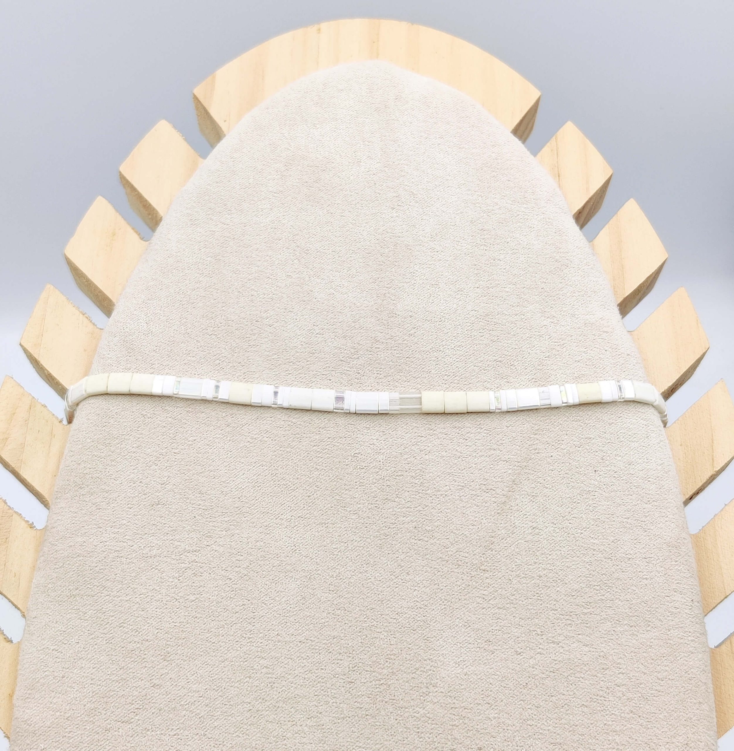 Collar choker de cristal japonés con cadena de alargue 7 cm en acero inoxidable con baño de oro 18 quilates