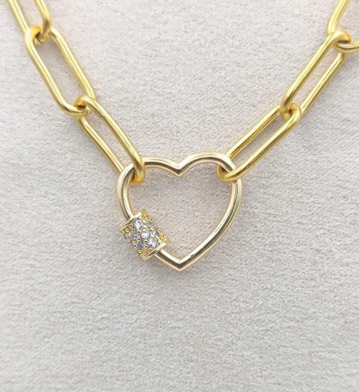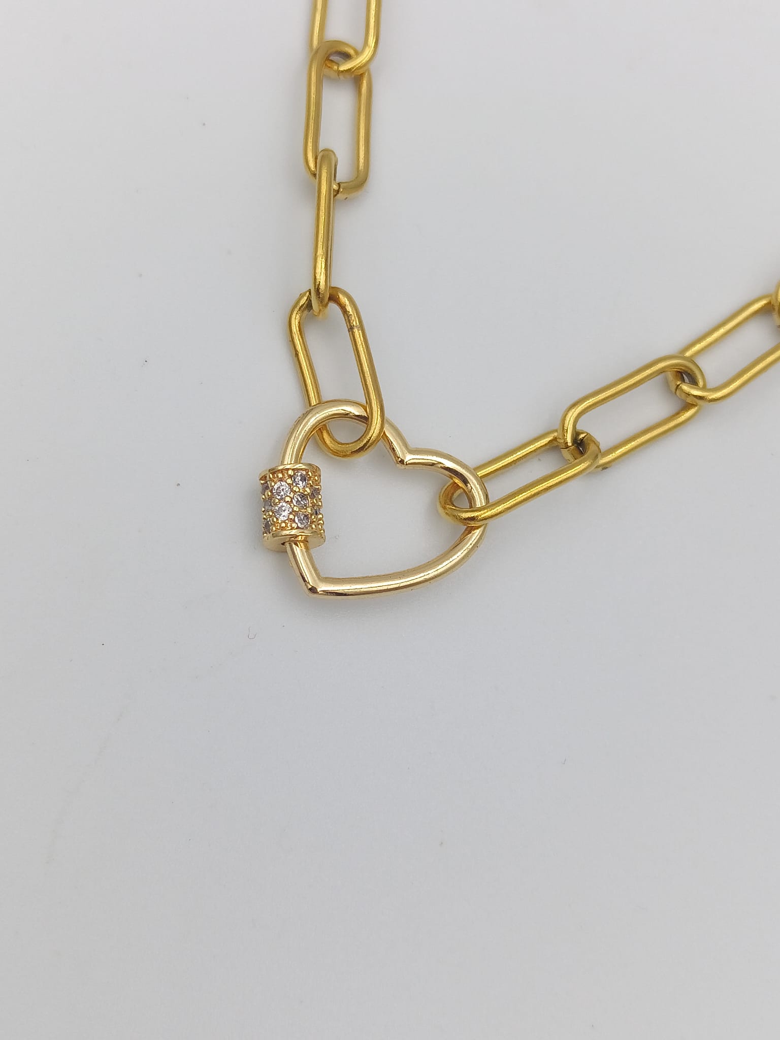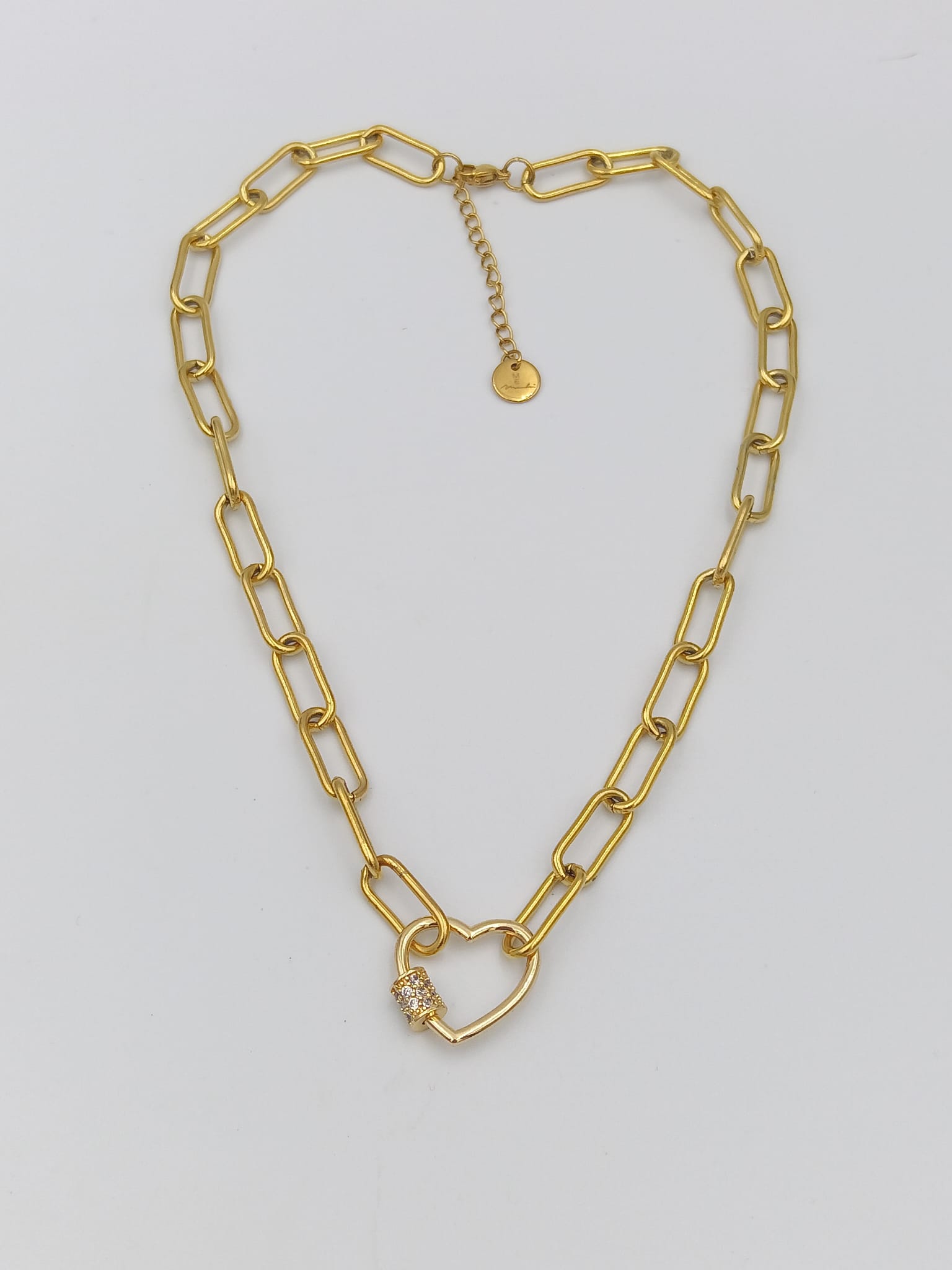Collar Corazon XL con cadena de eslabones XL en acero inoxidable con baño de oro 18 quilates