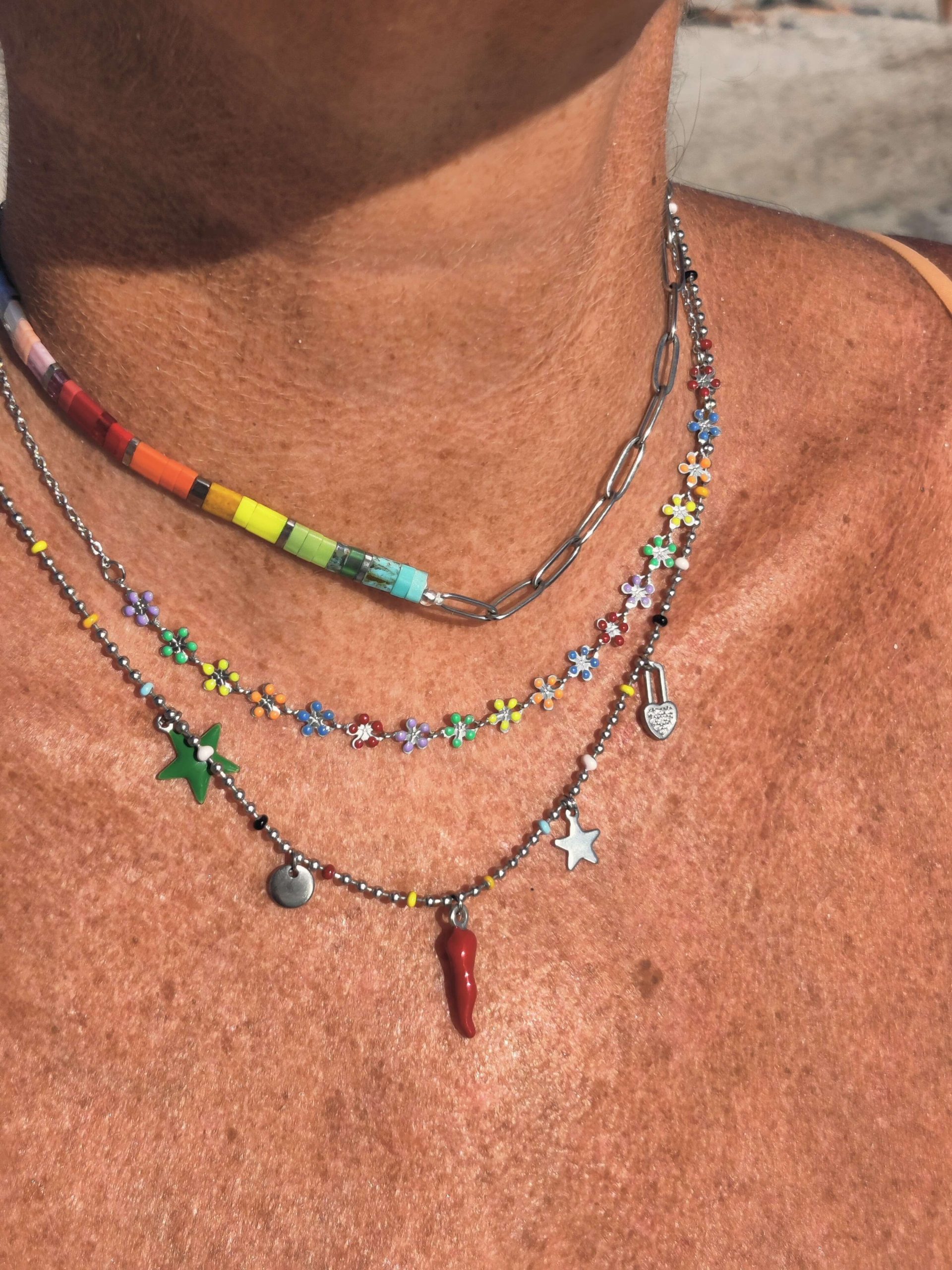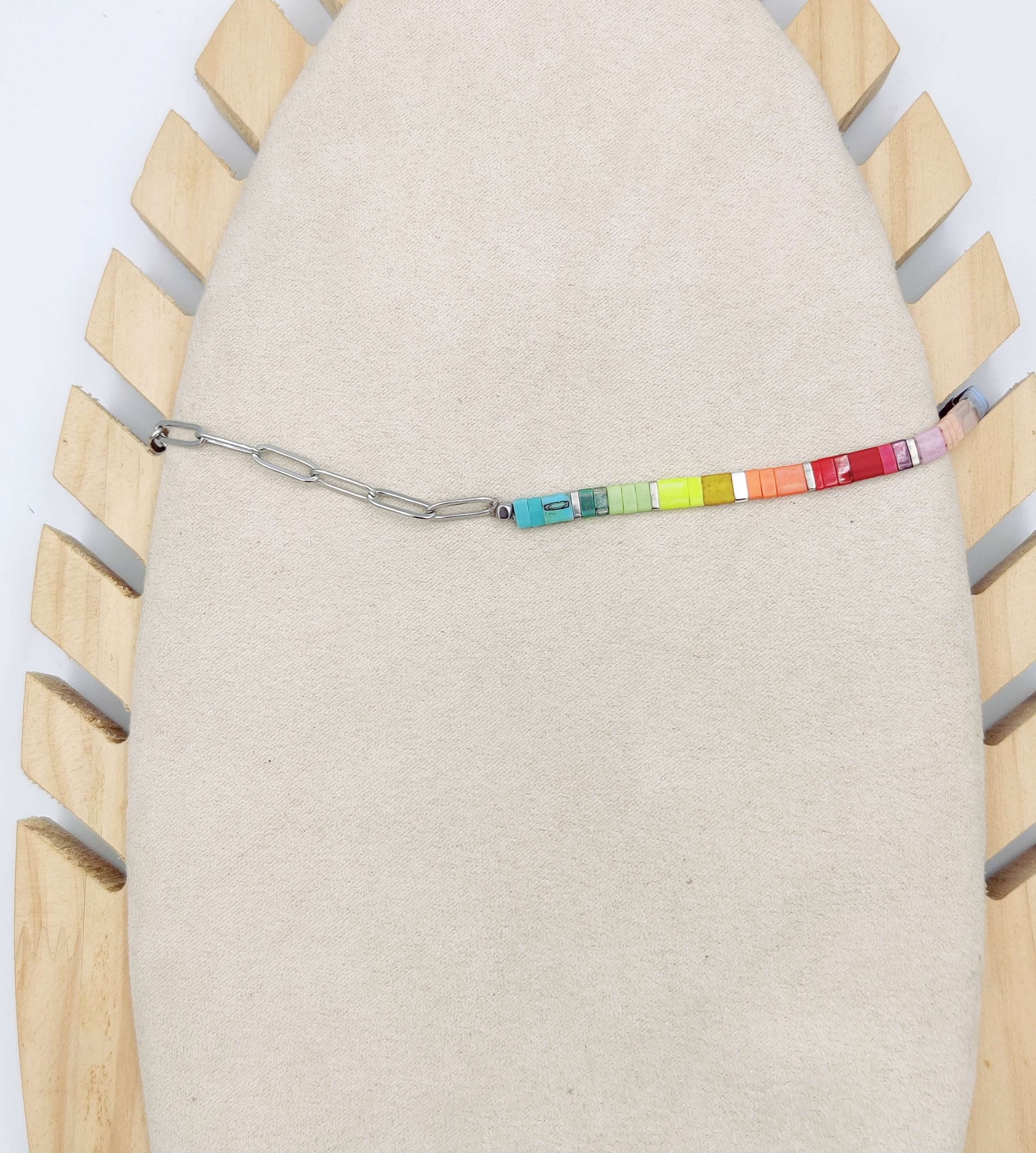Collar Half Rainbow Cristal Japonés Plateado