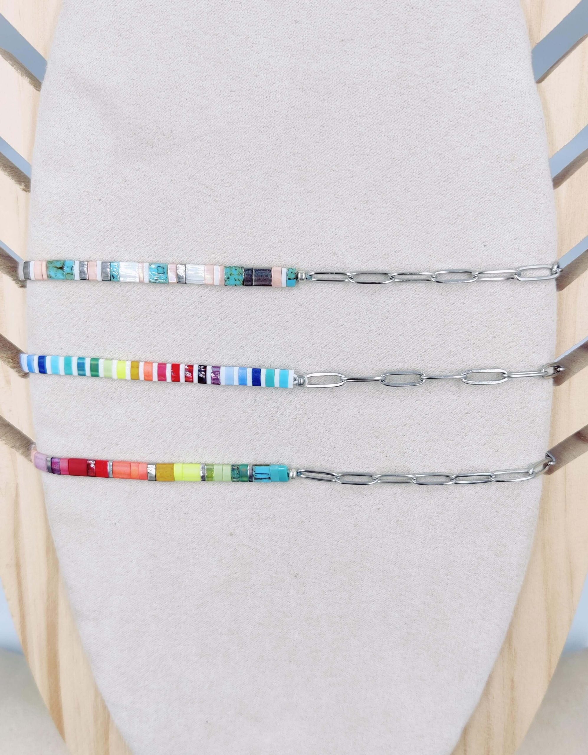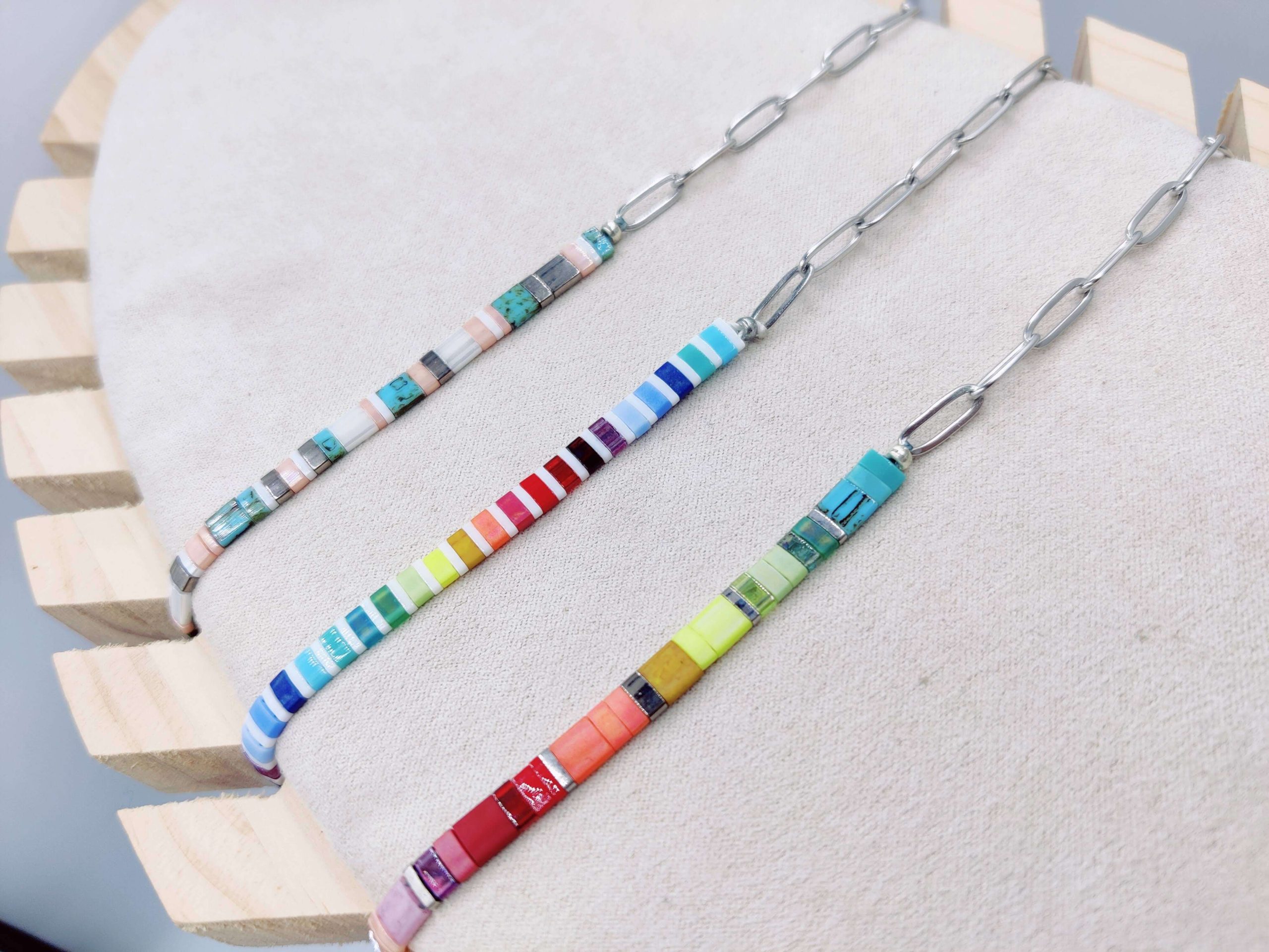 Collar cristal japonés con mitad de cadena eslabones en acero inoxidable.