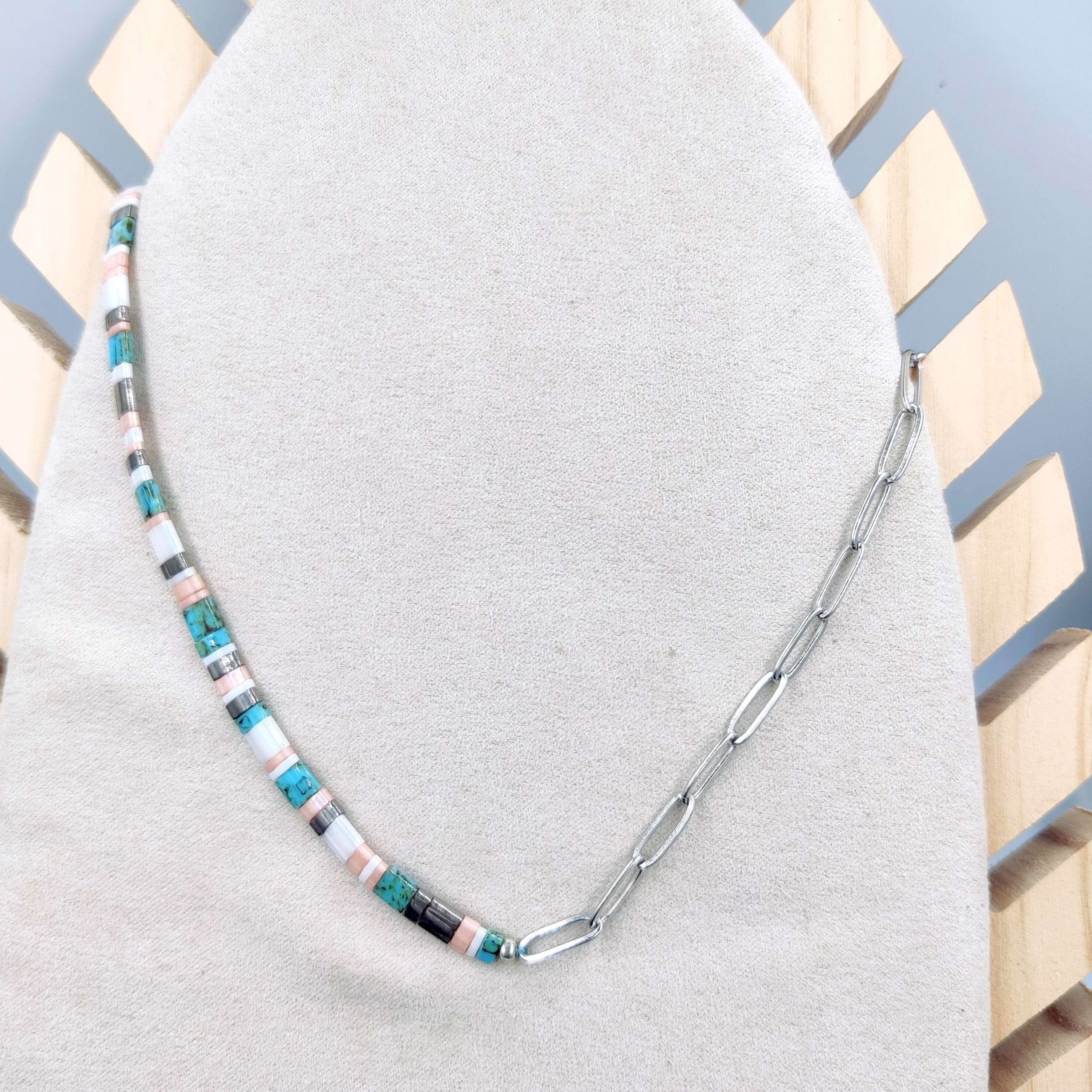 Collar cristal japonés con mitad de cadena eslabones en acero inoxidable.