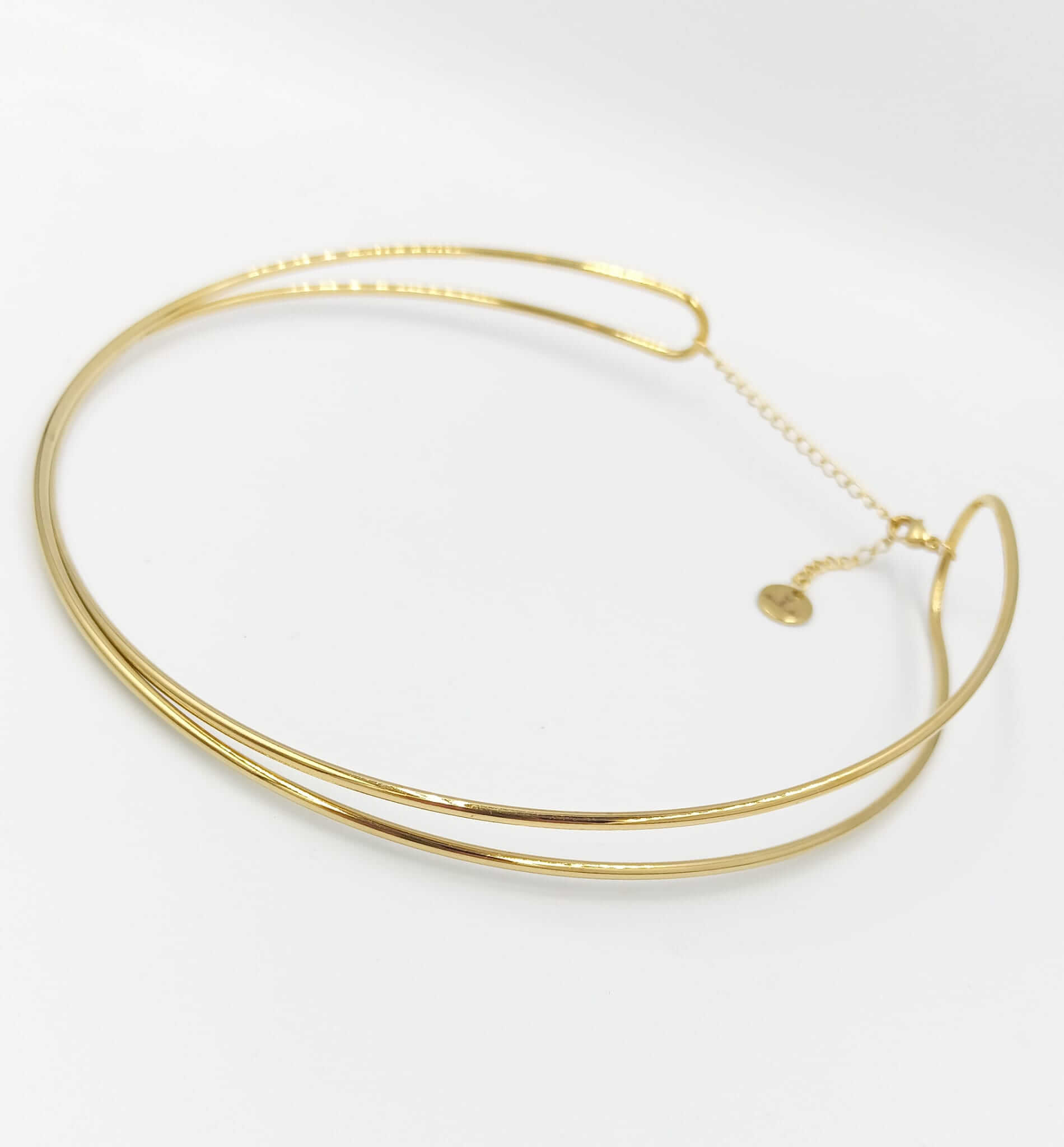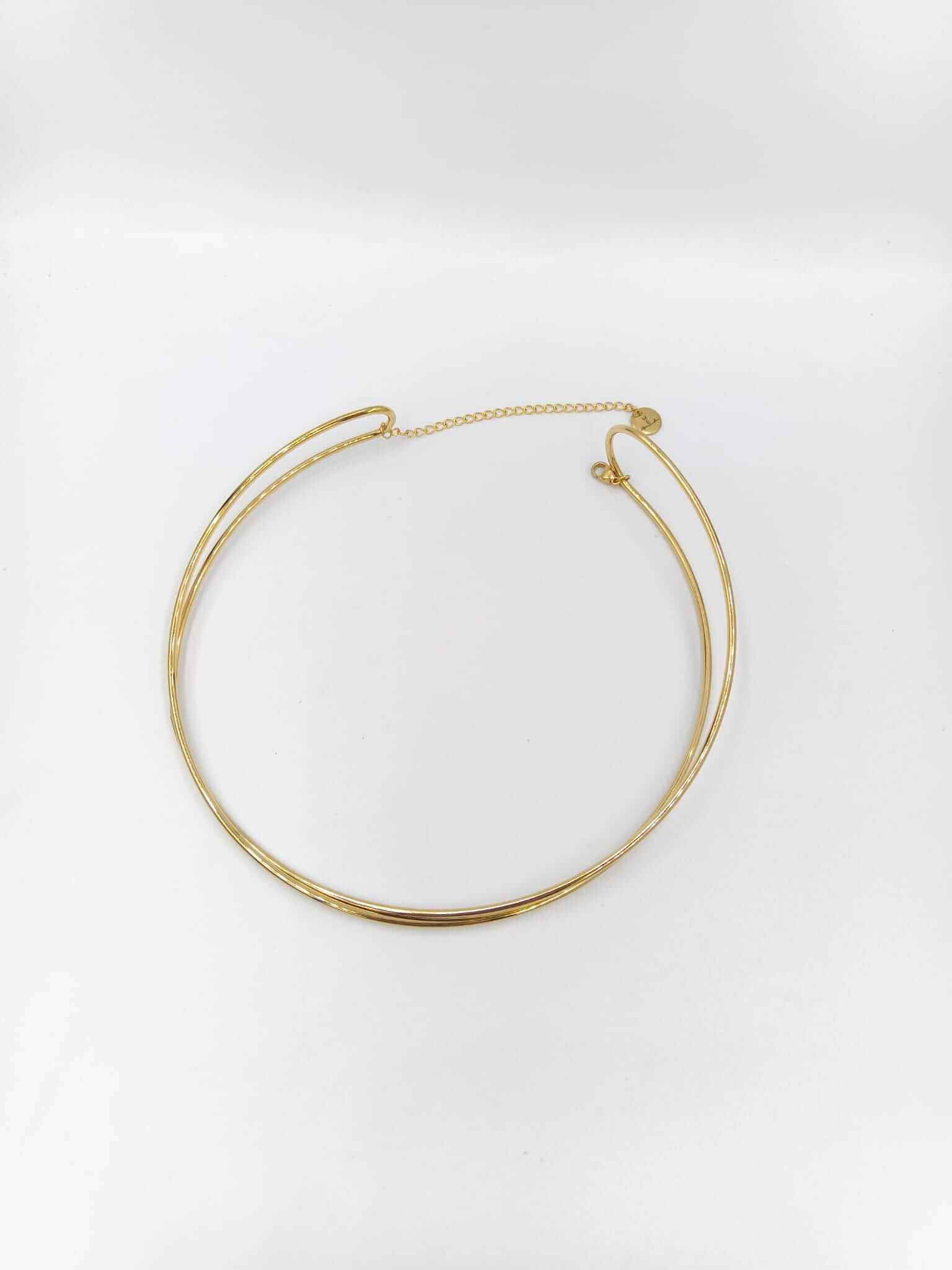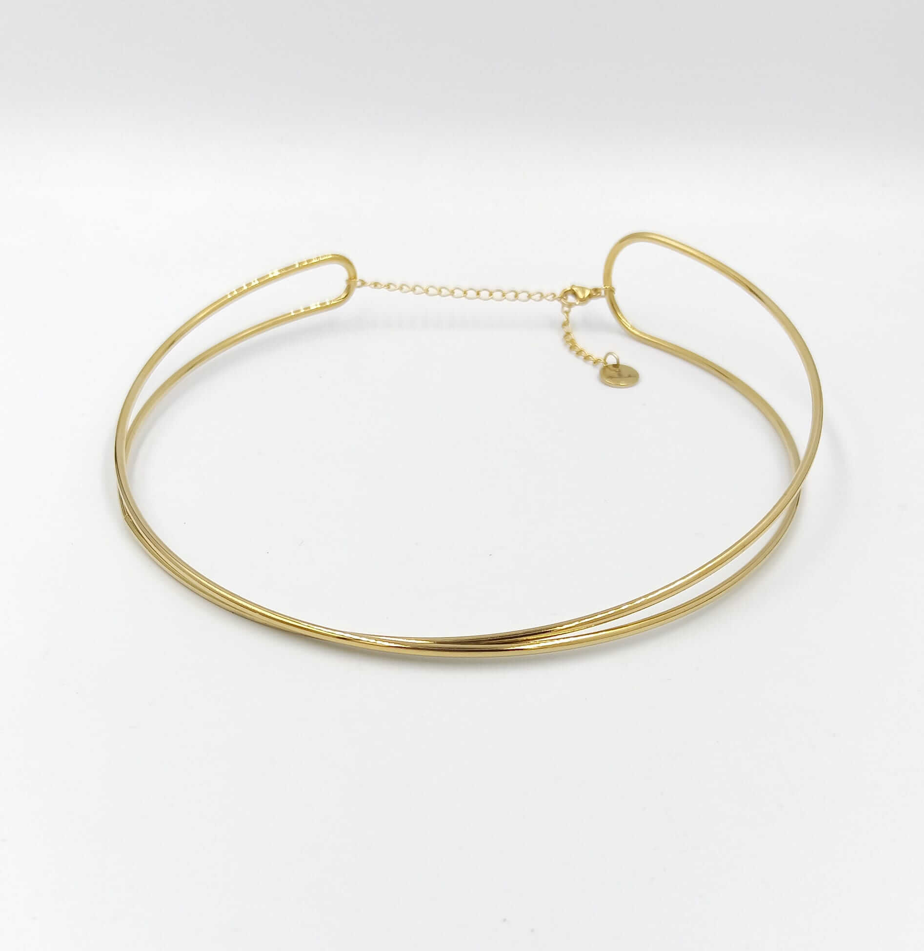 Choker Mary rígido de diseño en acero inoxidable con baño de oro 18 quilates.