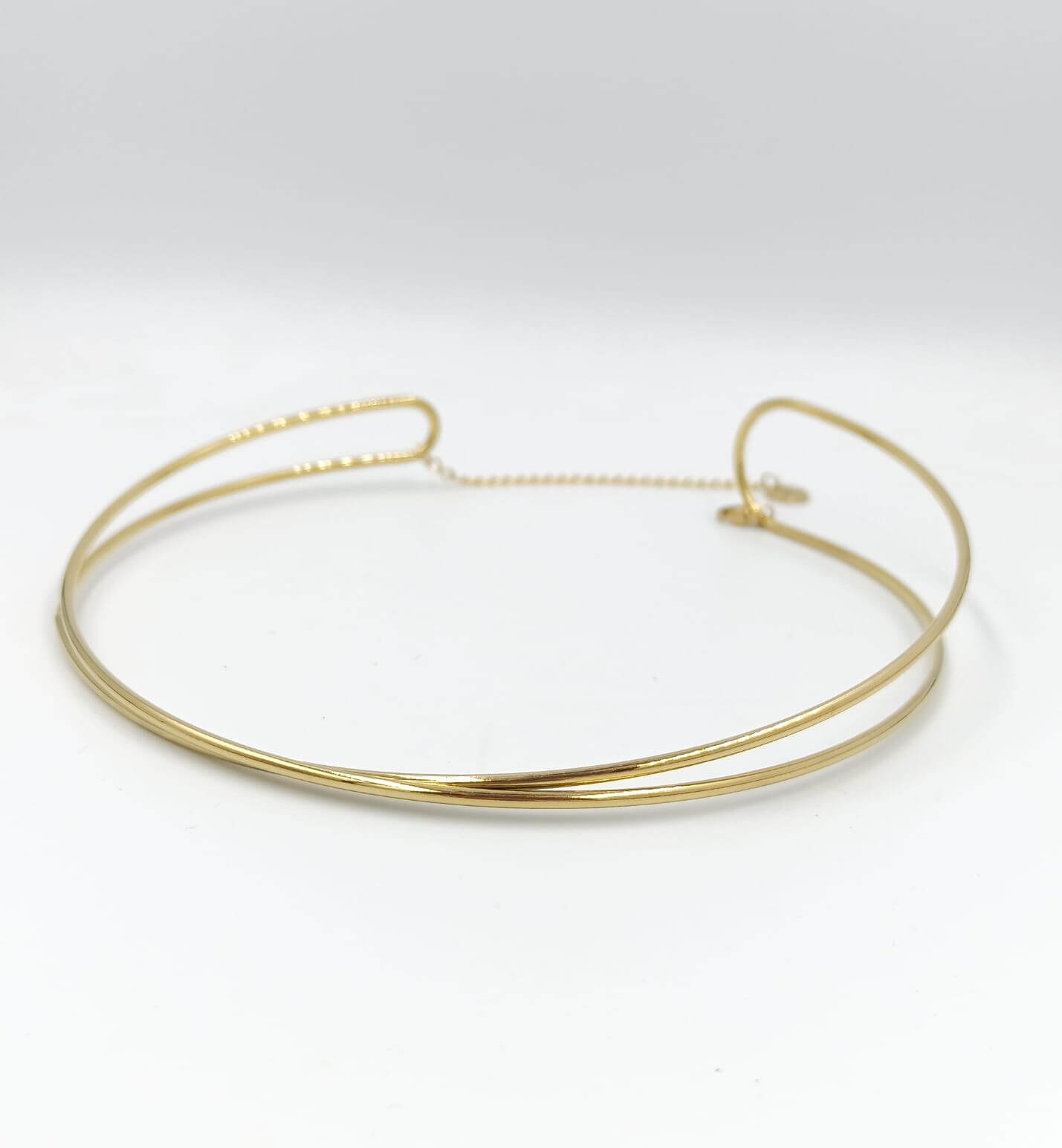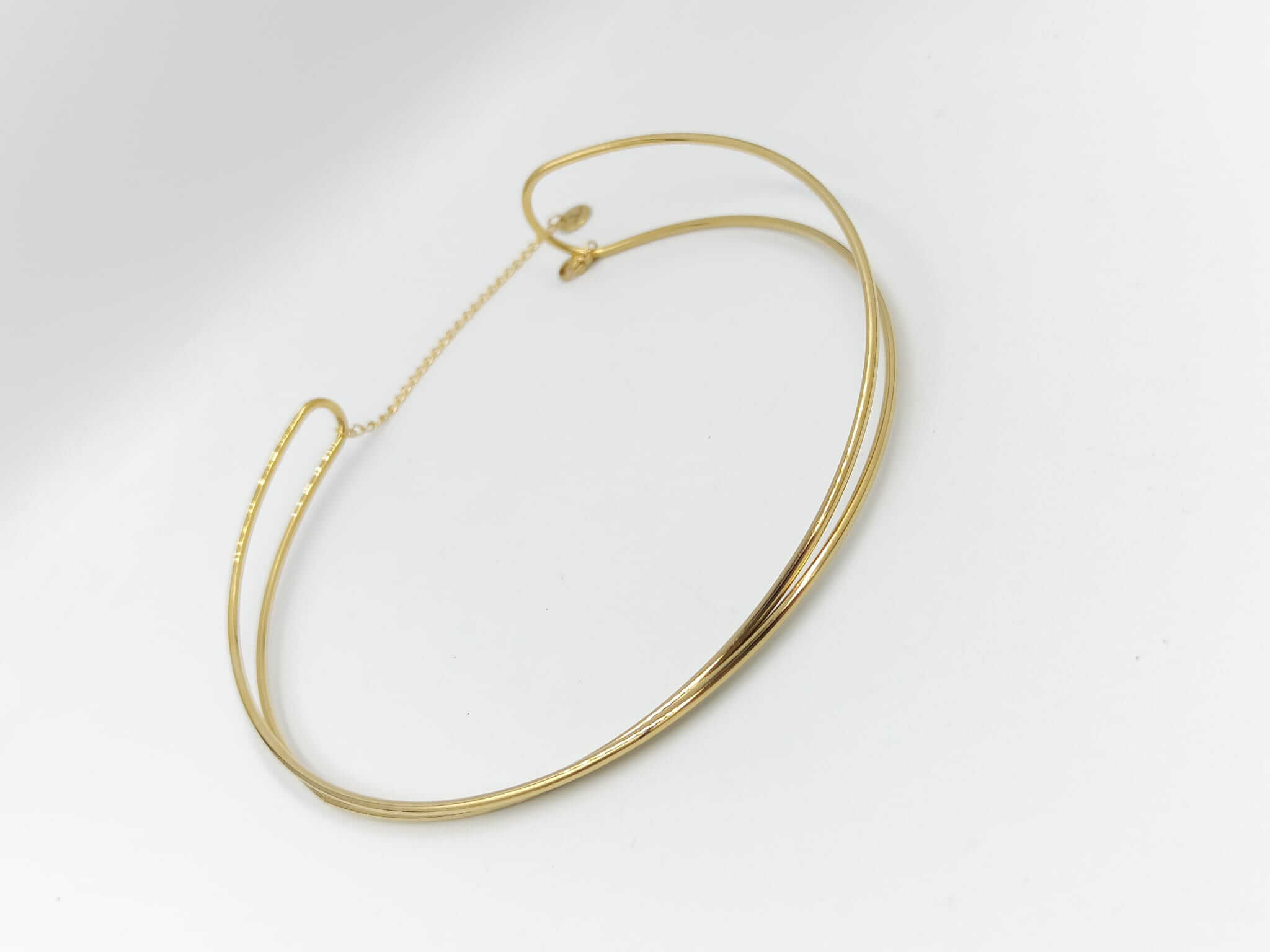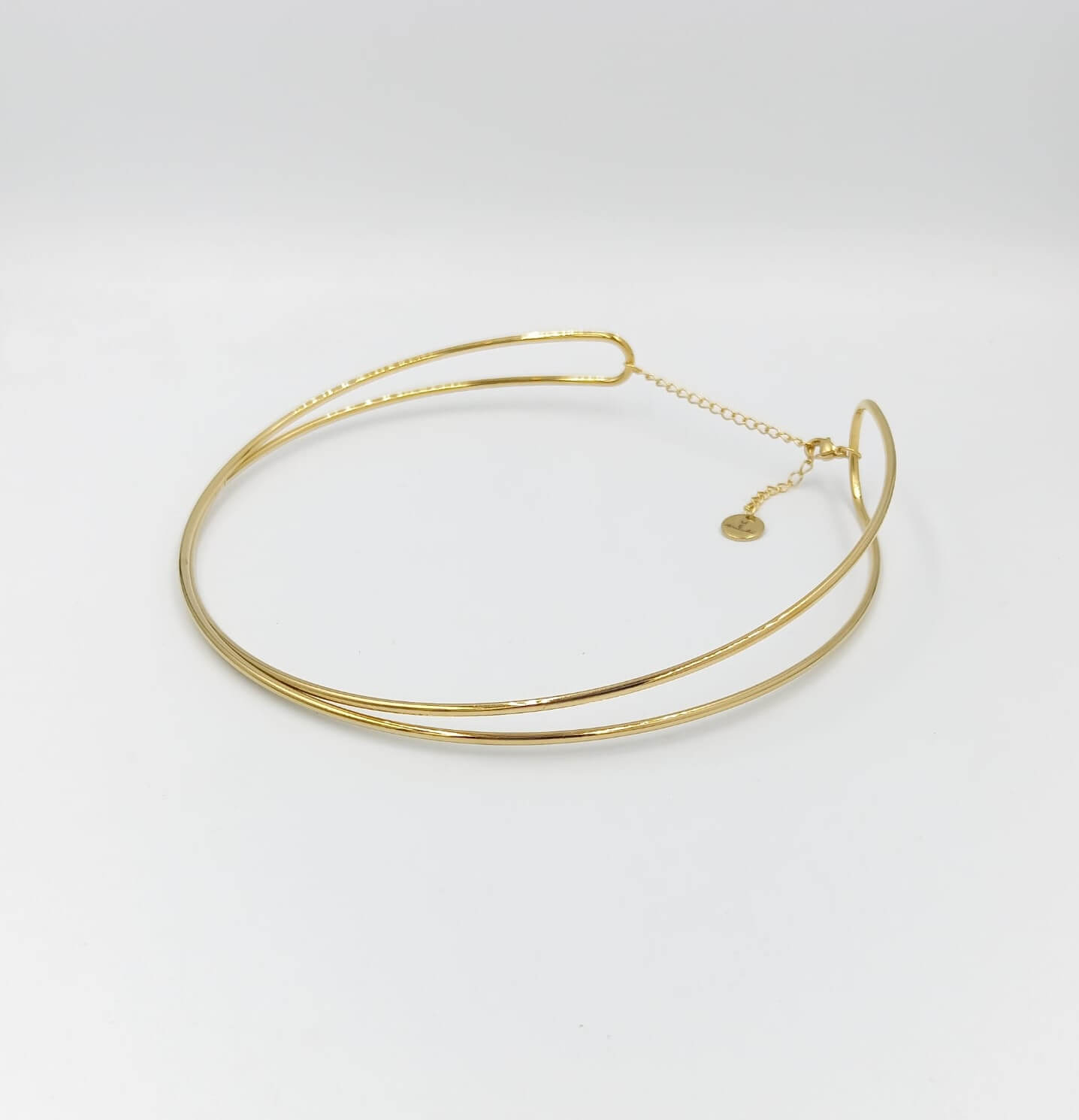 Choker Mary rígido de diseño en acero inoxidable con baño de oro 18 quilates.