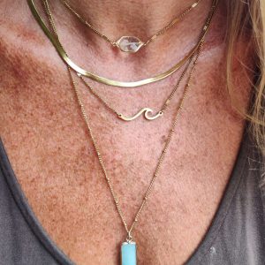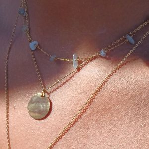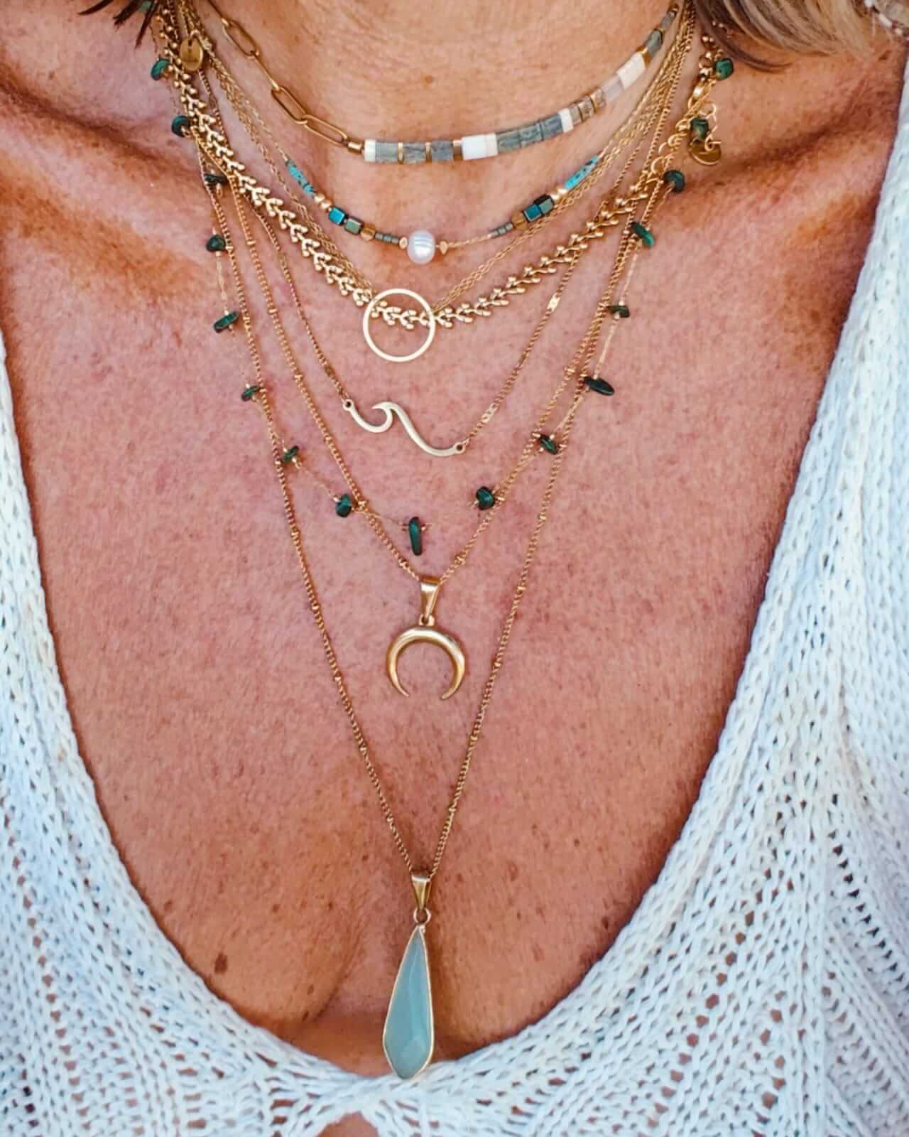 Collar Media Luna Invertida en acero inoxidable con baño de oro 18 quilates.