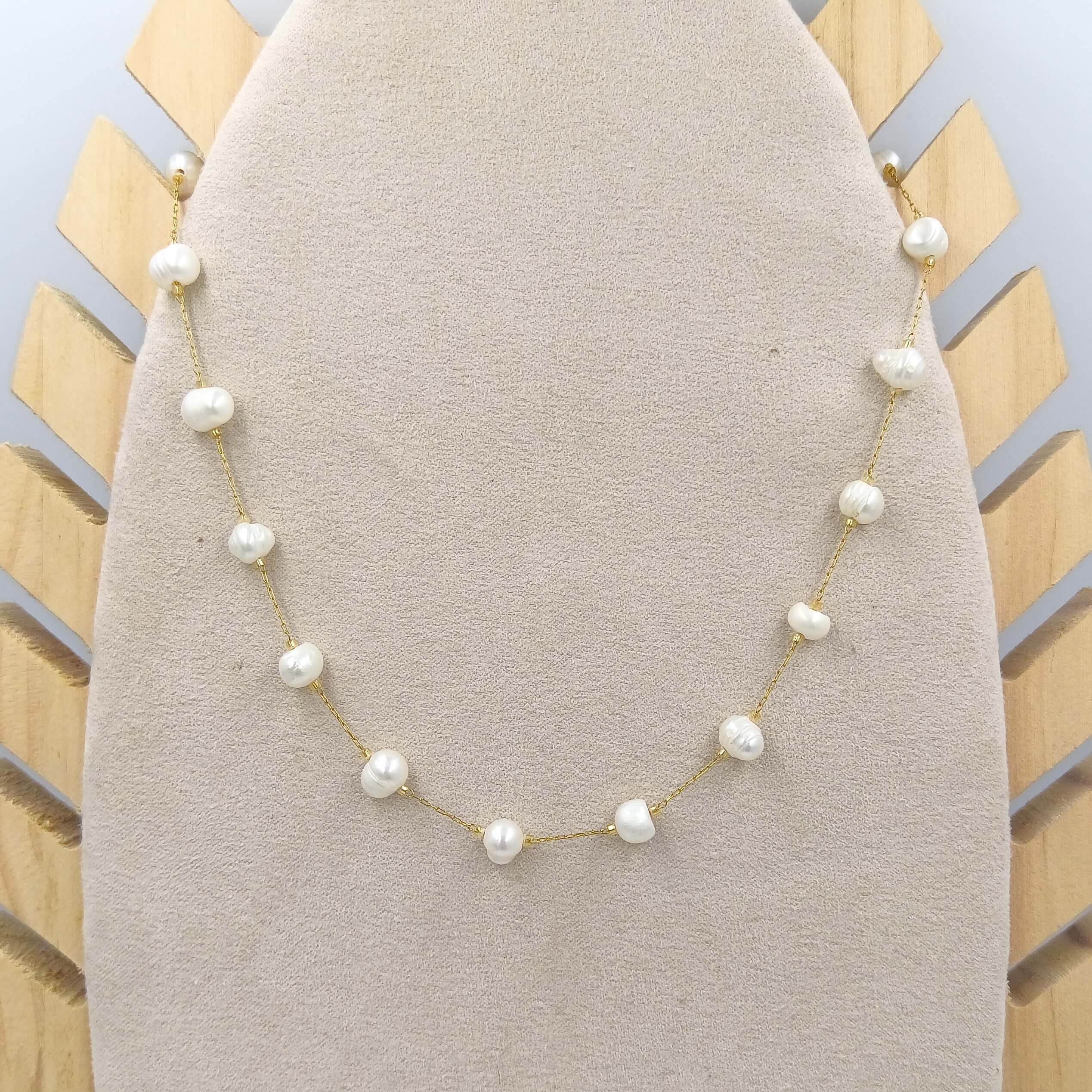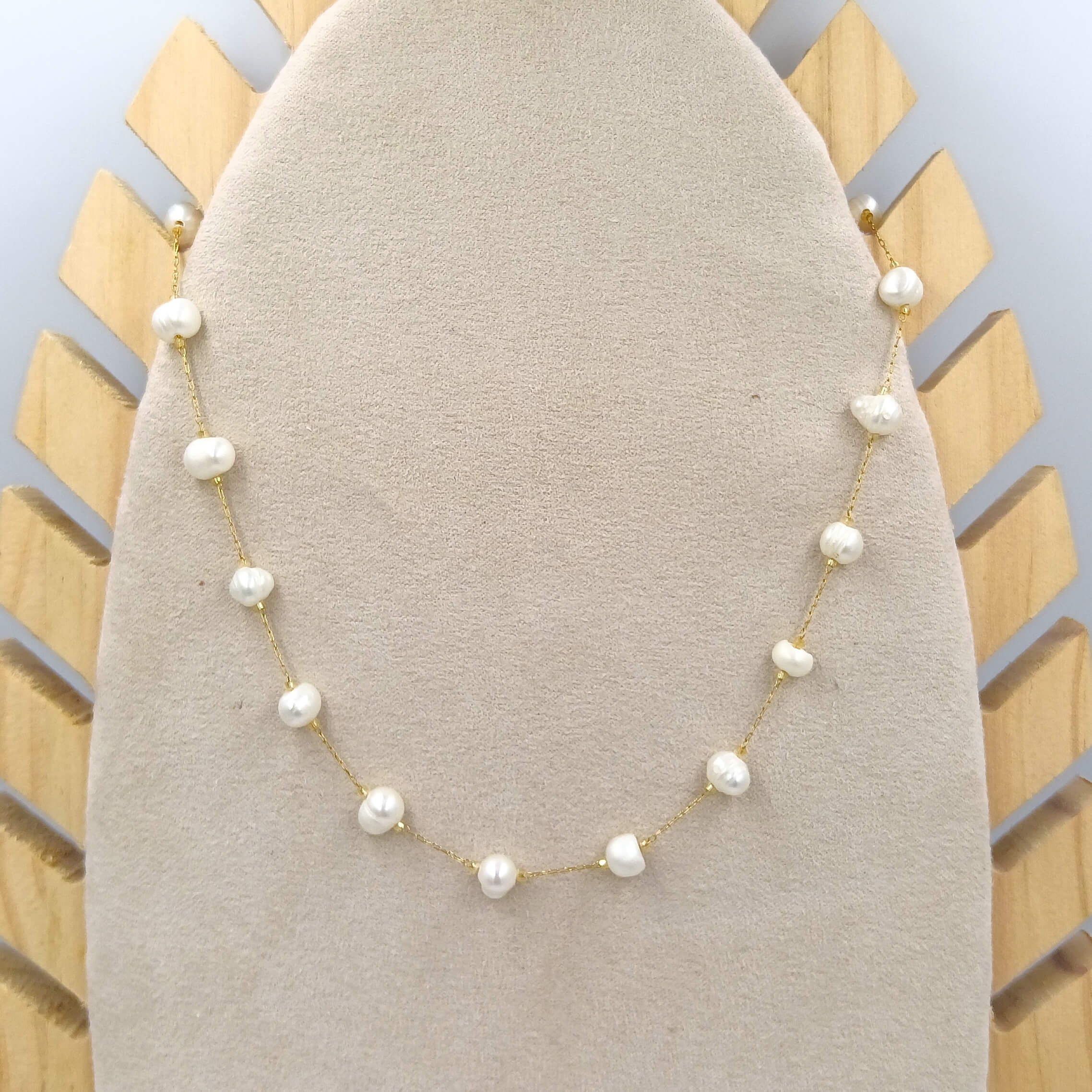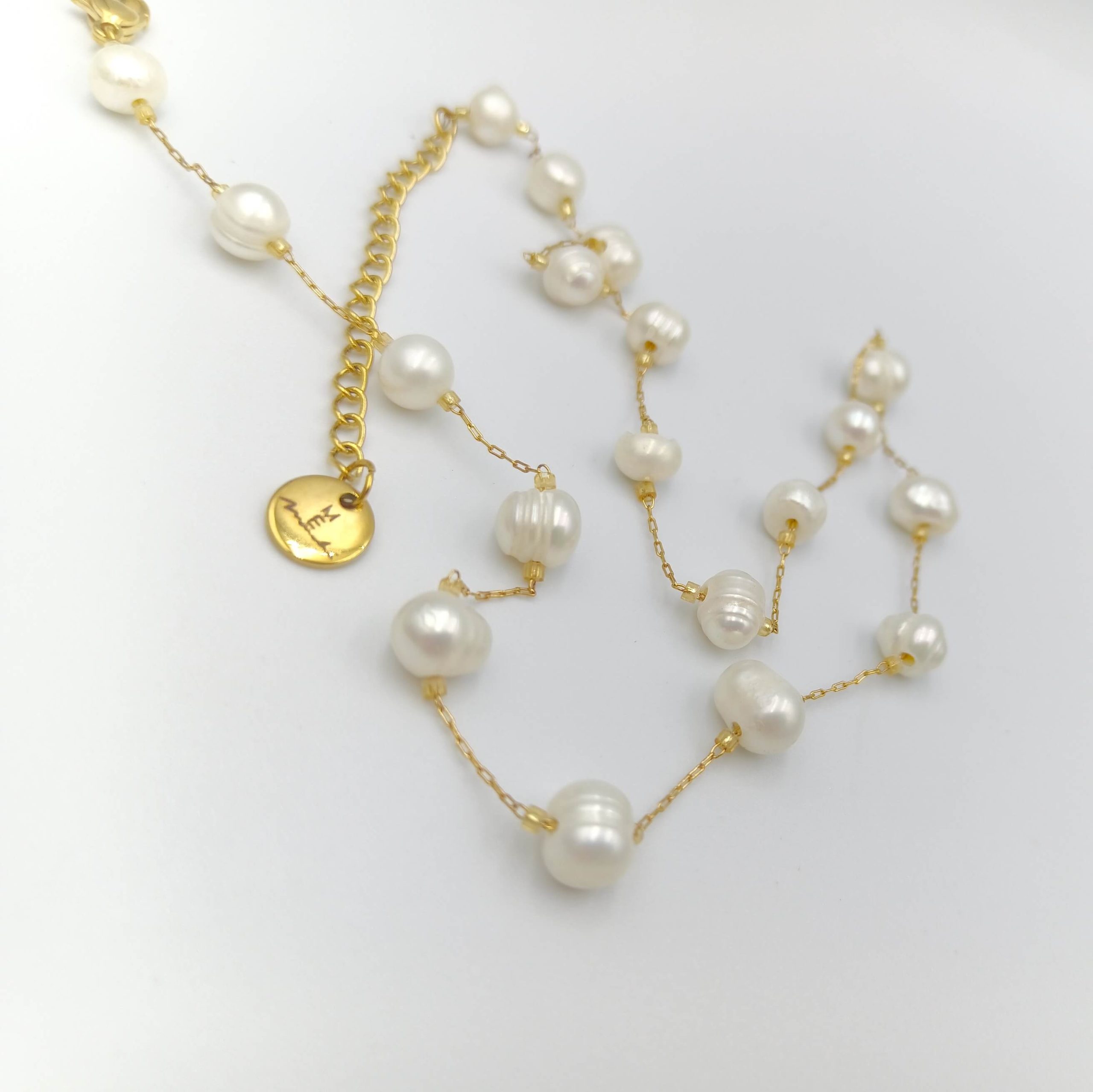 Collar Multiperlas de río (perla de agua dulce) en acero inoxidable con baño de oro 18 quilates