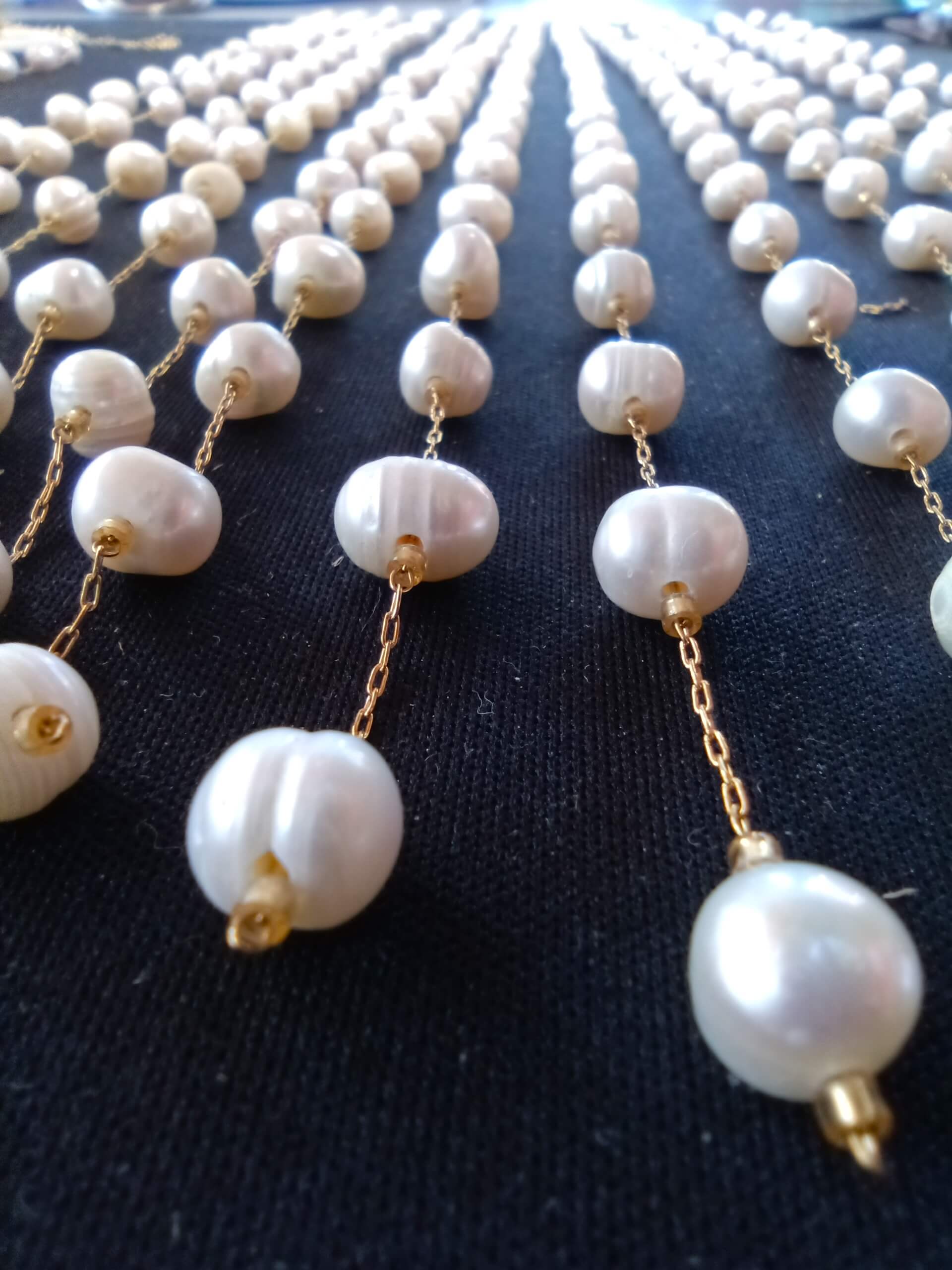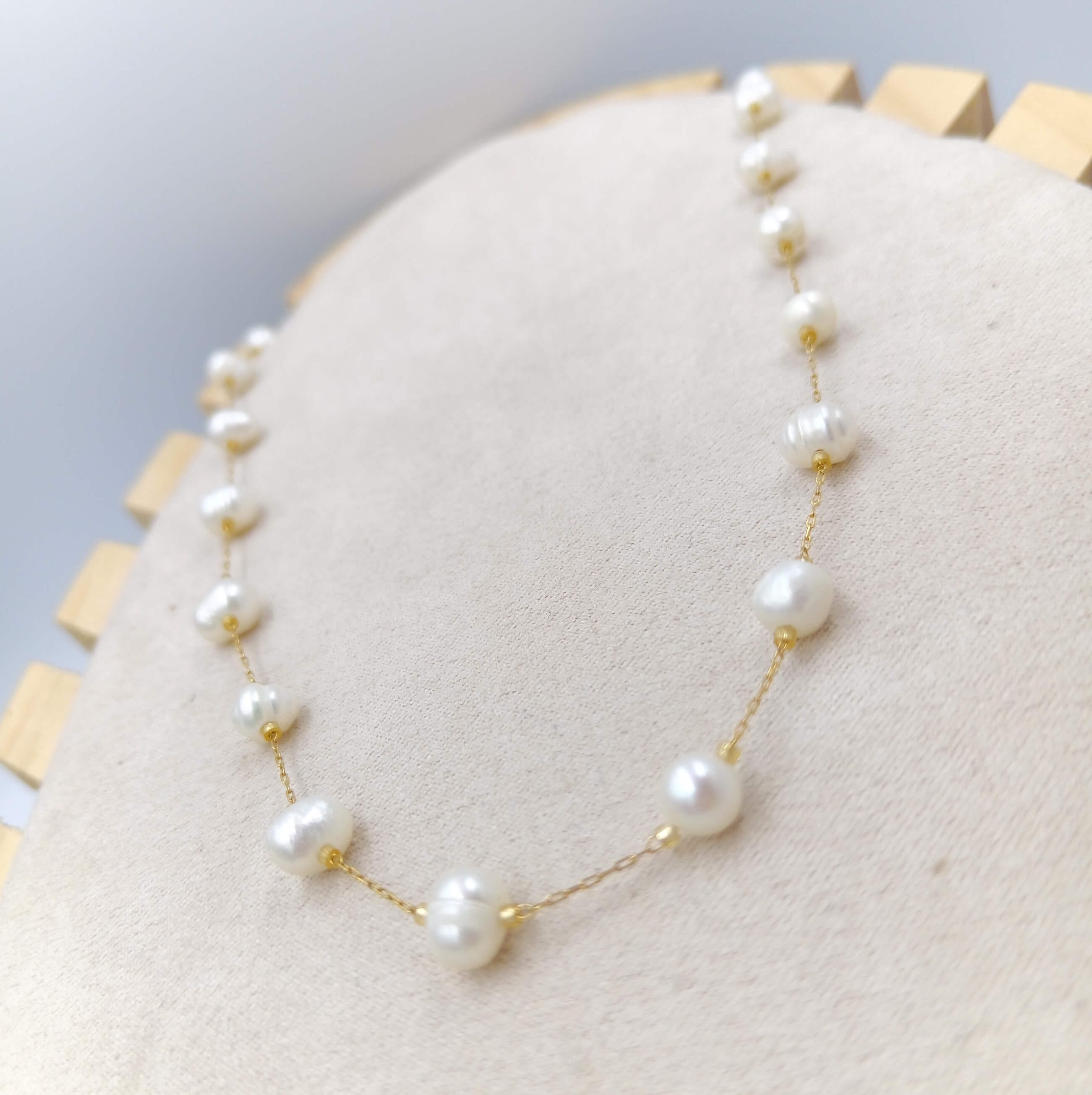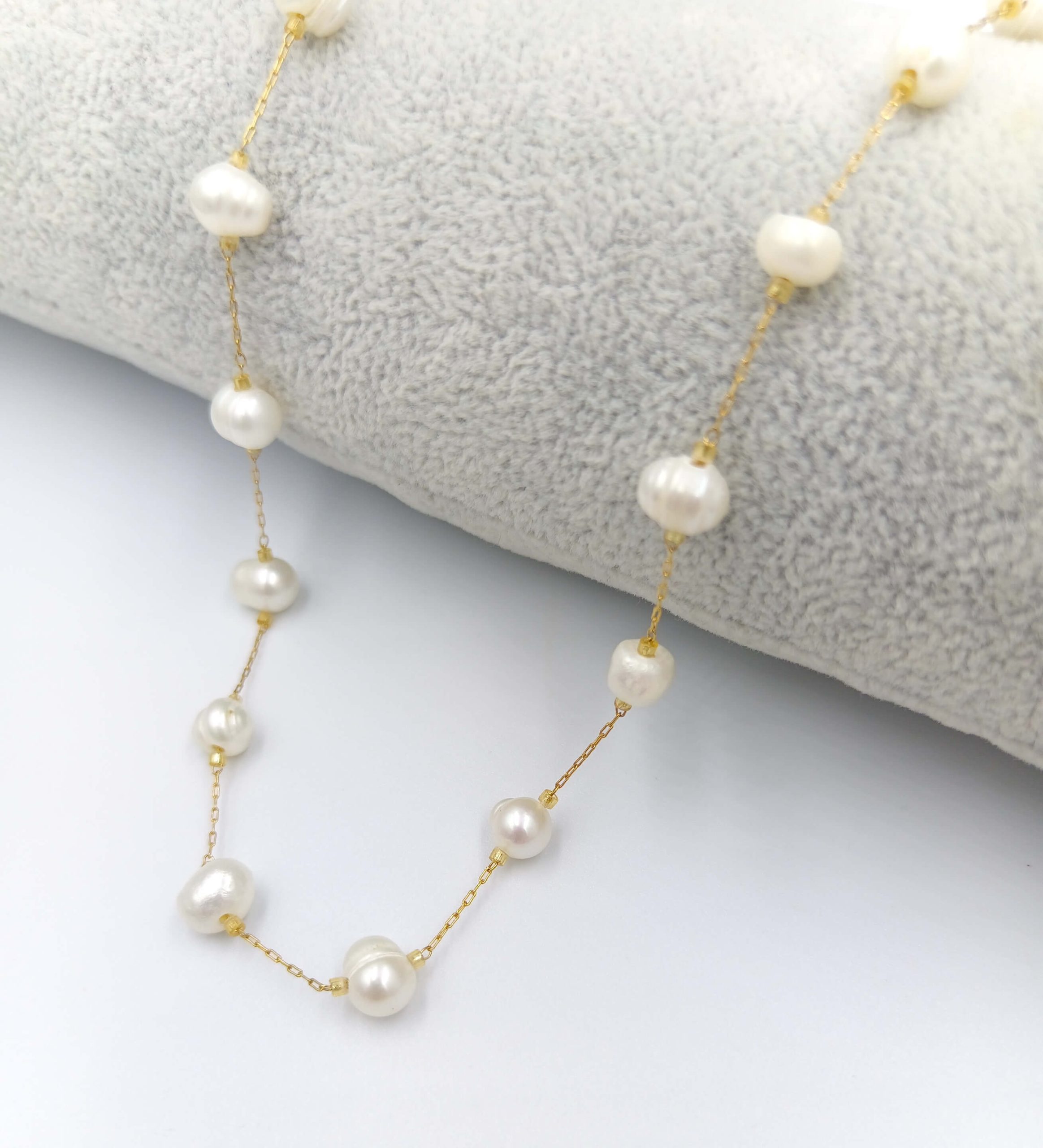 Collar Multiperlas de río (perla de agua dulce) en acero inoxidable con baño de oro 18 quilates