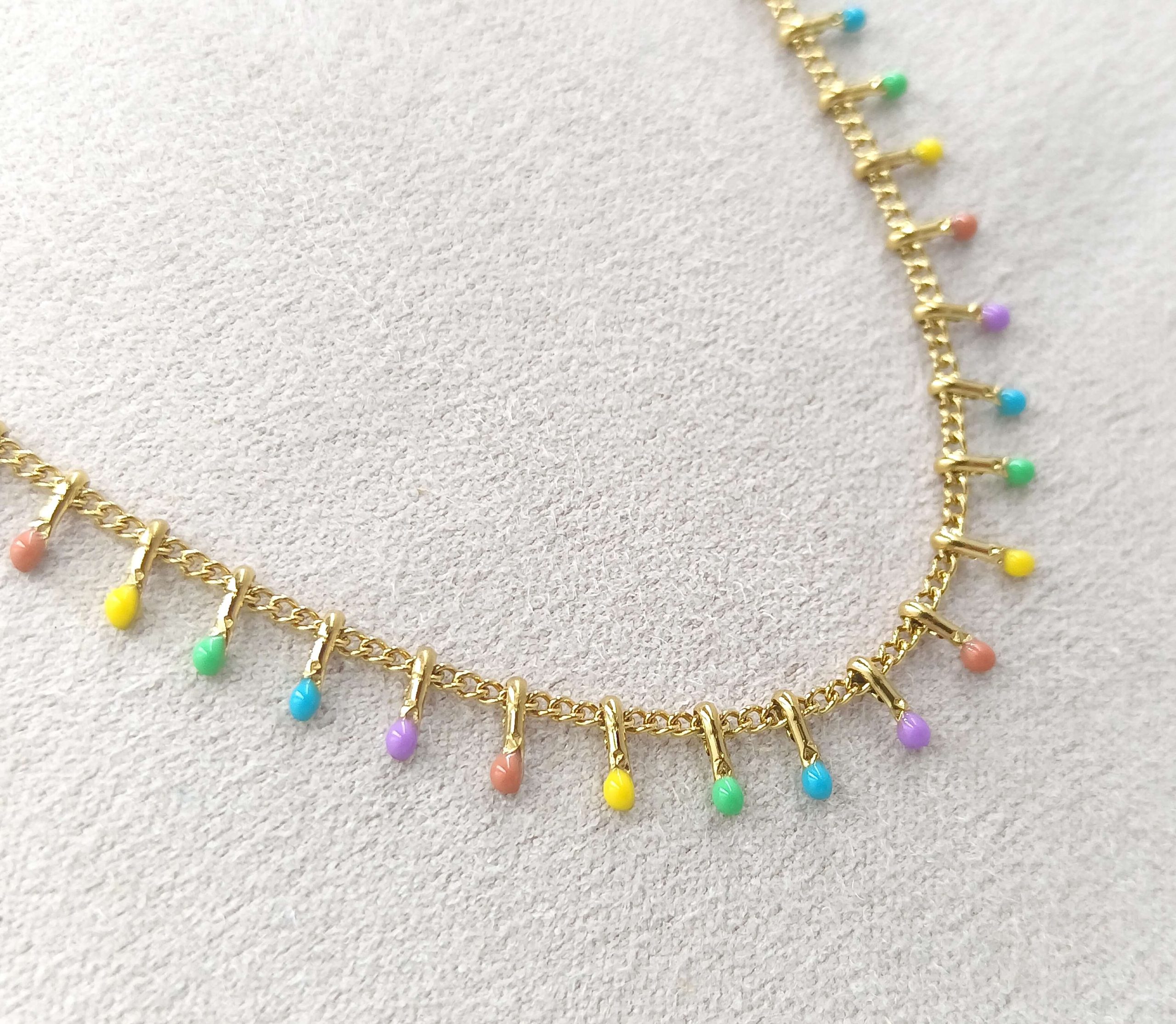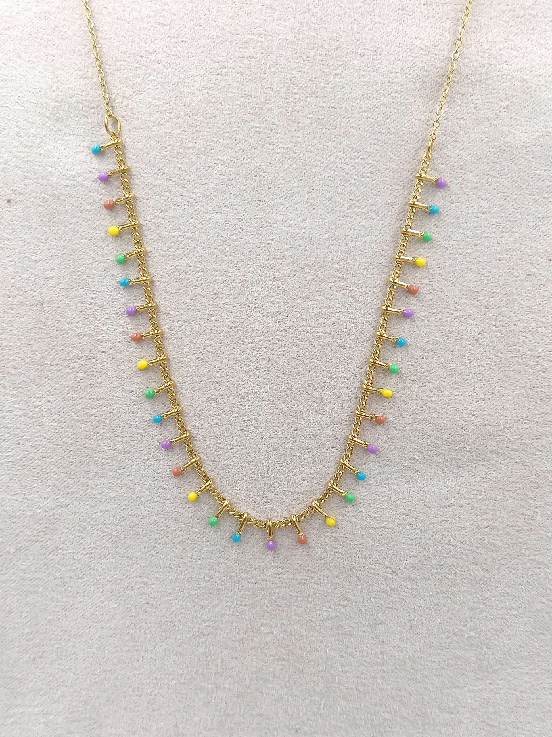 Collar Pincho Colorinche, detalles en esmalte multicolor y en acero inoxidable con baño de oro 18 quilates
