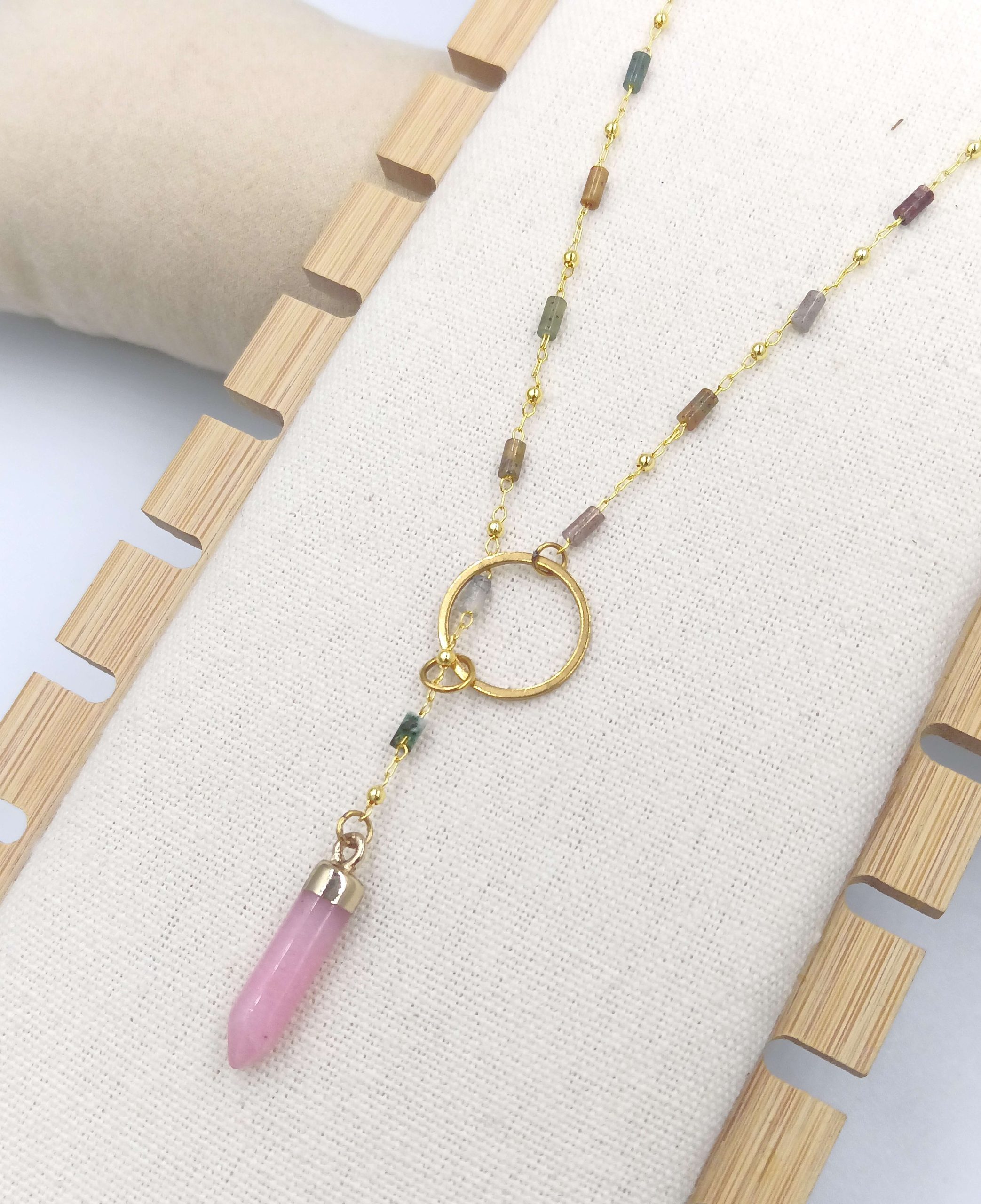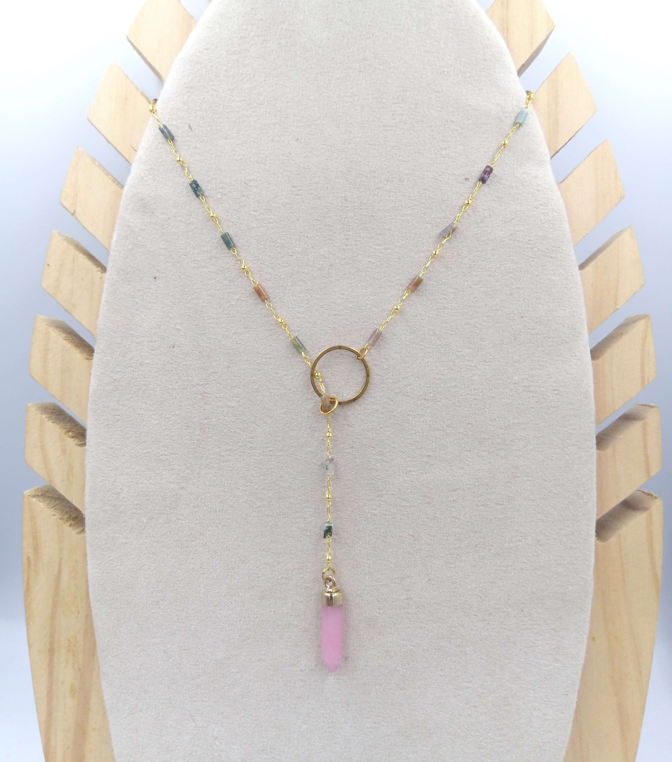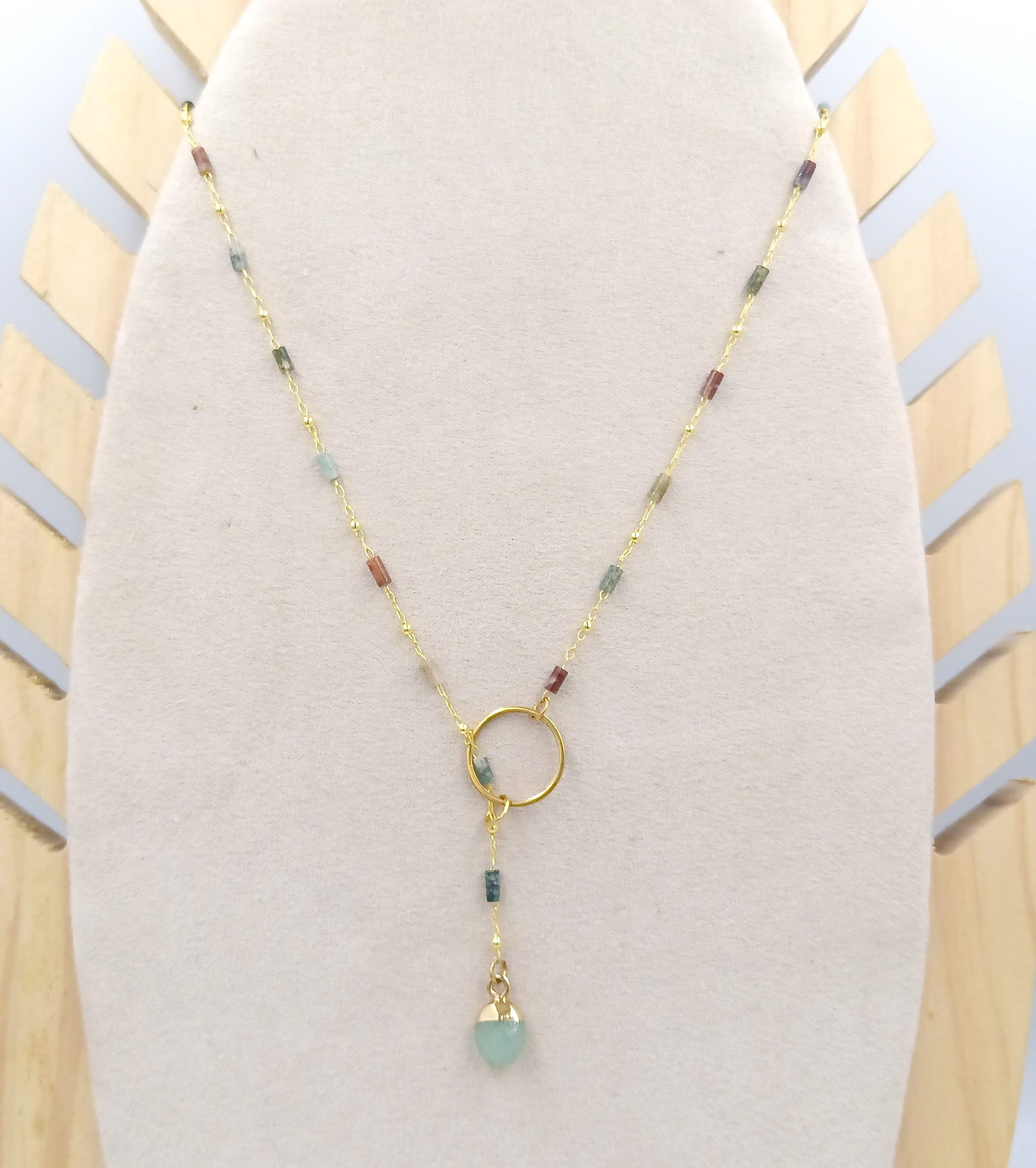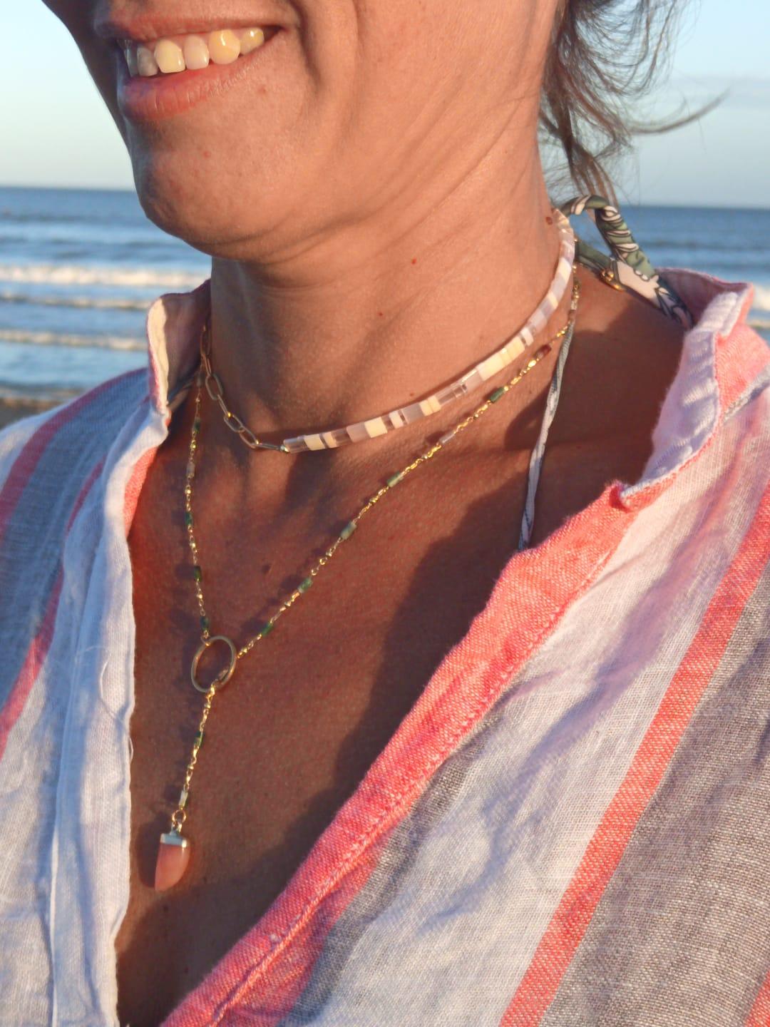 Corbatero Ágata con cadena brass con mini piedras ágatas dije en acero inoxidable con baño de oro 18 quilates y piedra semi preciosa