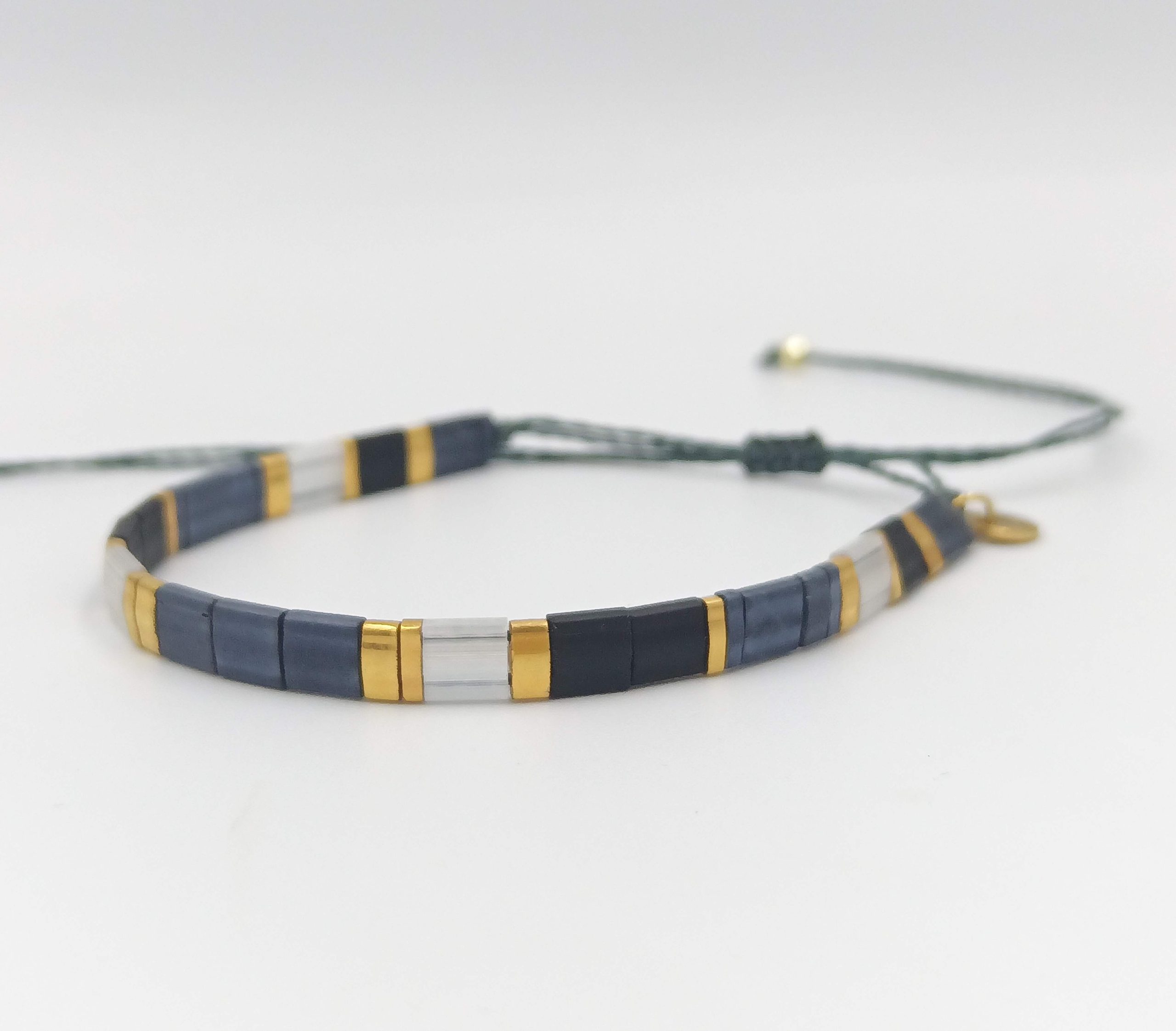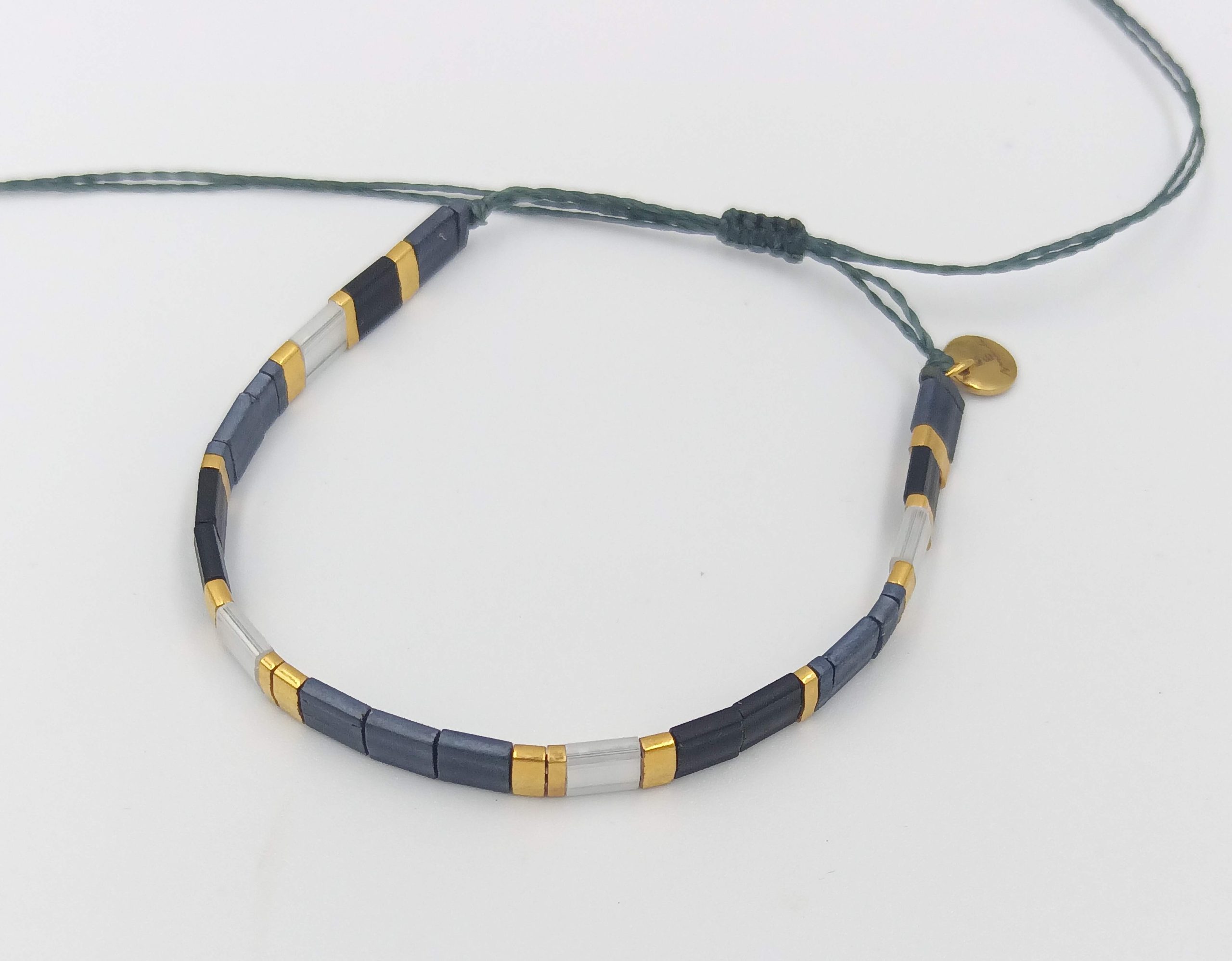 Pulsera Cristal Japones Gun Metal Oro Silk