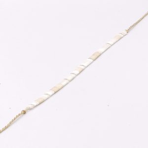 Es elástica fabricada con hilo de silicona, es muy resistente. Los tubitos metálicos son analérgicos al ser de brass (latón) y tiene cantidad de cristales en forma cubica.